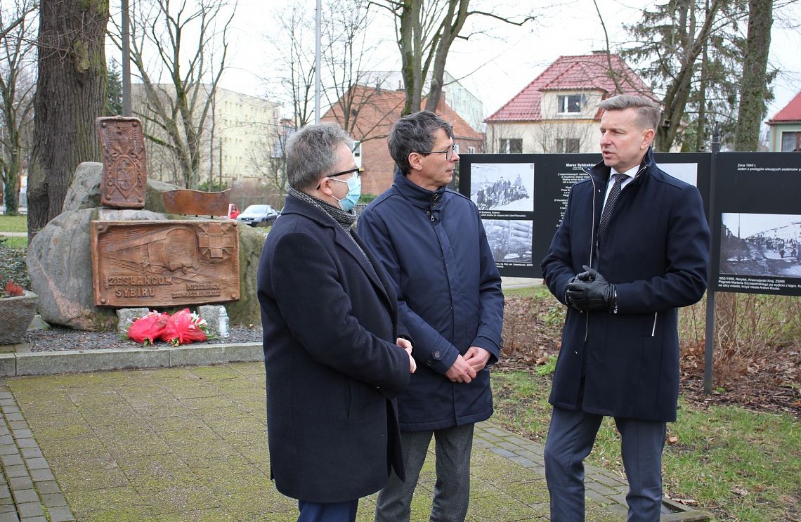Kwiaty pod pomnikiem Zesłańcom Sybiru złożyły władze samorządowe Lęborka i Powiatu Lęborskiego - Zastępca Burmistrza Miasta Jerzy Pernal i Sekretarz Miasta Marian Kurzydło oraz Wicestarosta Edmund Głombiewski.