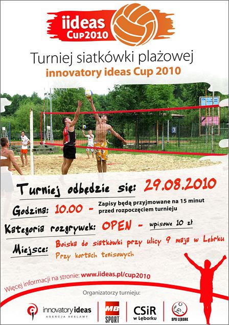 W ostatnią niedzielę wakacji 29 sierpnia Centrum Sportu i Rekreacji w Lęborku oraz SPS Lębork zapraszają wszystkich chętnych do wzięcia udziału w turnieju siatkówki plażowej Iideas Cup 2010.- XIV Ogólnopolski Bieg po muszlę św. Jakuba „Po Złocistej Plaży" odbędzie się w niedzielę 29 sierpnia 2010 w Łebie.