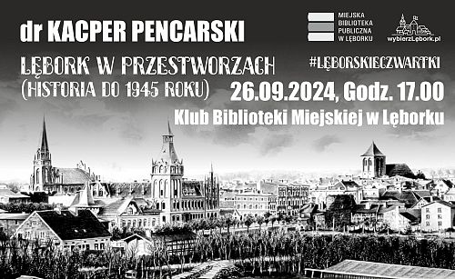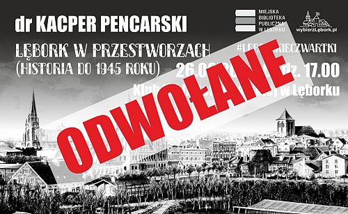 Spotkanie z dr. Kacprem Pencarskim "Lębork w przestworzach", które miało odbyć się 26 września 2024 r. w Bibliotece Miejskiej w Lęborku, zostało przeniesione na październik z przyczyn niezależnych od organizatora. O nowym terminie wydarzenia biblioteka poinformuje w późniejszym czasie.