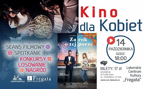 Lęborskie Centrum Kultury "Fregata" zaprasza na kolejne filmowe spotkanie przygotowane specjalnie dla Pań. Kino dla Kobiet w swoim założeniu ma być wieczorem dla wszystkich Pań, które chcą oderwania od codziennych obowiązków oraz potrzebują chwili wytchnienia i relaksu w swoim gronie. W repertuarze tych spotkań proponujemy ciekawe filmy specjalnie dobrane do żeńskiej widowni, poprzedzone atrakcjami organizowanymi tuż przed seansem na sali kinowej.