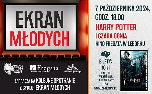 W poniedziałek, 7 października 2024 roku, Lęborskie Centrum Kultury „Fregata” i Młodzieżowa Rada Miasta Lęborka, zapraszają na film "Harry Potter i Czara Ognia". Seans odbędzie się w ramach cyklu "Ekran Młodych". Początek o godzinie 18.00.