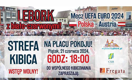 Pierwsza w historii strefa kibica w Lęborku działa dalej! Mamy nadzieję, że wspólny doping lęborczan tym razem pomoże naszej reprezentacji. Na oglądanie meczu na Placu Pokoju zaprasza Miasto Lębork wraz z Lęborskim Centrum Kultury „Fregata” i Centrum Sportu i Rekreacji w Lęborku.