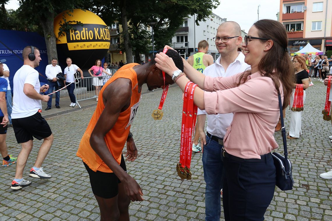 Za nami 23. edycja Biegu Ulicznego św. Jakuba – sportowej wizytówki Jarmarku św. Jakuba w Lęborku. Drugi rok z rzędu zwycięzcą został Adam Głogowski z UKS Ekonomika - Maratończyka Lębork/Mizuno Team, który liczącą 10 kilometrów trasę pokonał w rewelacyjnym czasie 30 minut i 40 sekund! Tuż za nim finiszował jego klubowy kolega Emil Dobrowolski (31:09), a podium uzupełnił Bogdan Semenowycz z Kijowa (31:20). Wśród kobiet triumfowała Monika Stachowska (Akademia Treningu Sportowego Stachowscy) z wynikiem 34:59, poprawiając ubiegłoroczne drugie miejsce. Drugie miejsce zajęła Monika Brzozowska (35:19, 12 Wielkopolska Brygada Wojsk Obrony Terytorialnej), trzecia była Nataliia Semenovych z Kijowa (35:30). Czwarte miejsce wywalczyła najlepsza z mieszkanek Lęborka, Katarzyna Pobłocka - Głogowska (36:27, UKS Ekonomik - Maratończyk Lębork).