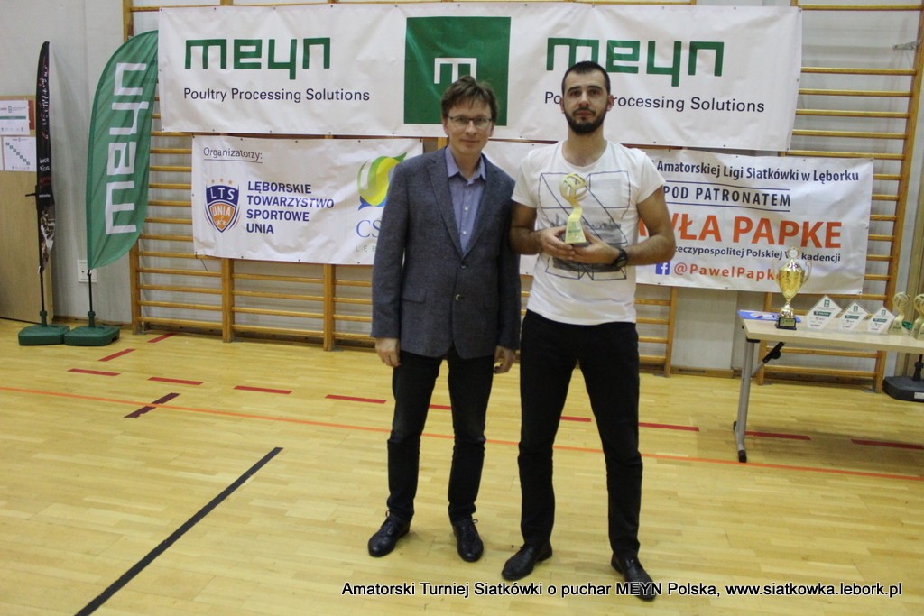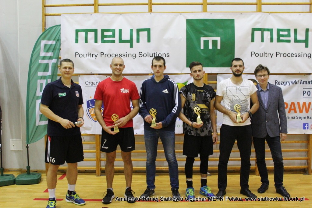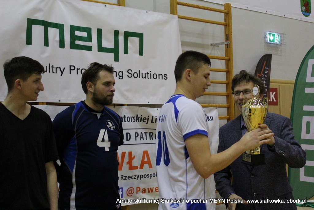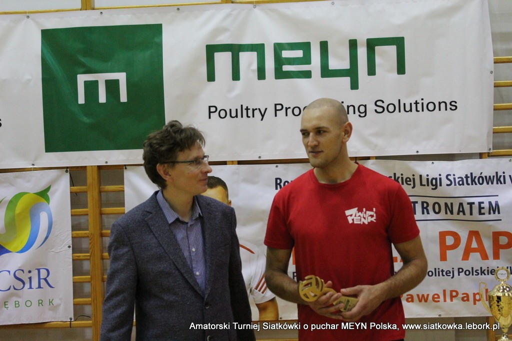 W półfinałach spotkały się te cztery zespoły, AZS Lębork grał z Nasz Dach Stężyca. Po pierwszym secie zwycięskim dla AZSu, zawodnicy ze Stężycy mocno się skoncentrowali i dość wysoko wygrali drugiego seta. W trzecim kontrolowali grę i zwyciężyli 2:1. W drugim półfinale grali AZS Uniwersytet Gdański i Proterm Żabka. Bez straty seta AZS UG pokonał Proterm Żabka i awansował do finału. W meczu o trzecie miejsce zespół Proterm Żabka pokonał AZS Lębork, który wyraźnie opadł z sił. W finale AZS Uniwersytet Gdański po wyrównanym pierwszym secie, i wysokim zwycięstwie w drugim, pokonał zespół Nasz Dach Stężyca i został zdobywcą puchary MEYN Polska. Nagrodzone zostały cztery najlepsze zespoły - z rąk dyrektora Centrum Sportu i Rekreacji w Lęborku Jacka Wityka otrzymały medale i trofea. Zostali również wyróżnieni zawodnicy z czterech najlepszych zespołów: Grzegorz Koziacz (AZS Lębork), Szymon Bajek (Proterm Żabka), Piotr Labuda (Nasz Dach Stężyca) i Piotr Karkut (AZS UW).