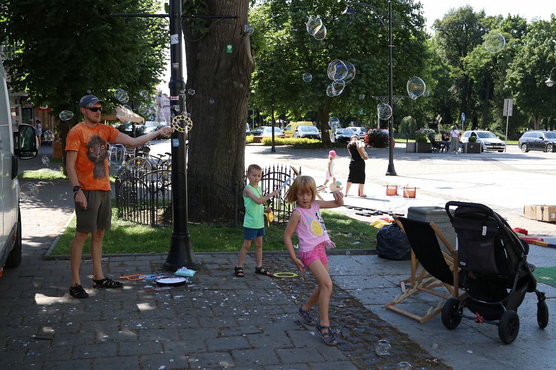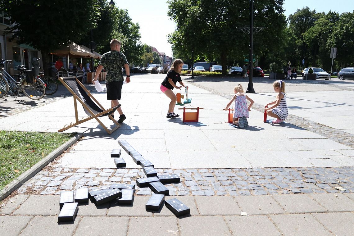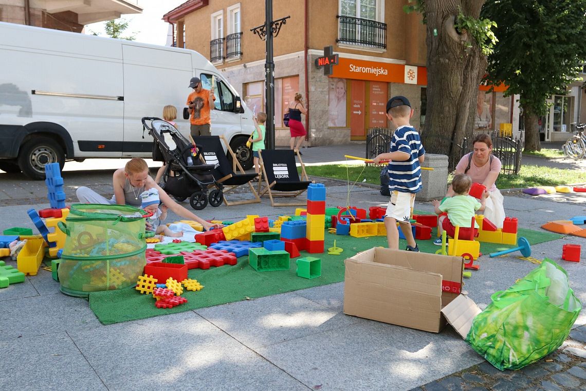 Na ul. Staromiejskiej jeszcze do godziny 16:00 czekają atrakcje. Można też zapisać się do biblioteki, wypożyczać i czytać książki oraz po prostu spędzić miło czas. Dzieci korzystają z toru przeszkód, klocków wielkoformatowych i kolorowanek z postaciami z ulubionych bajek, a chętni mogą przygotować sobie maskę księżniczki, jednorożca lub Batmana.