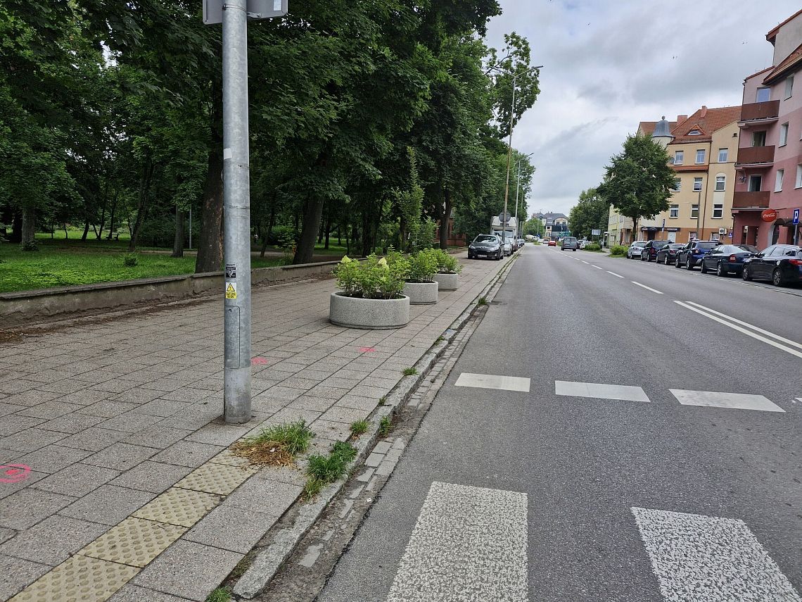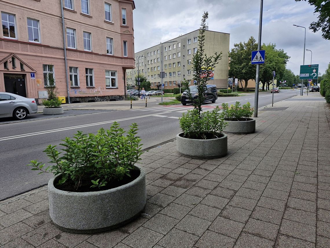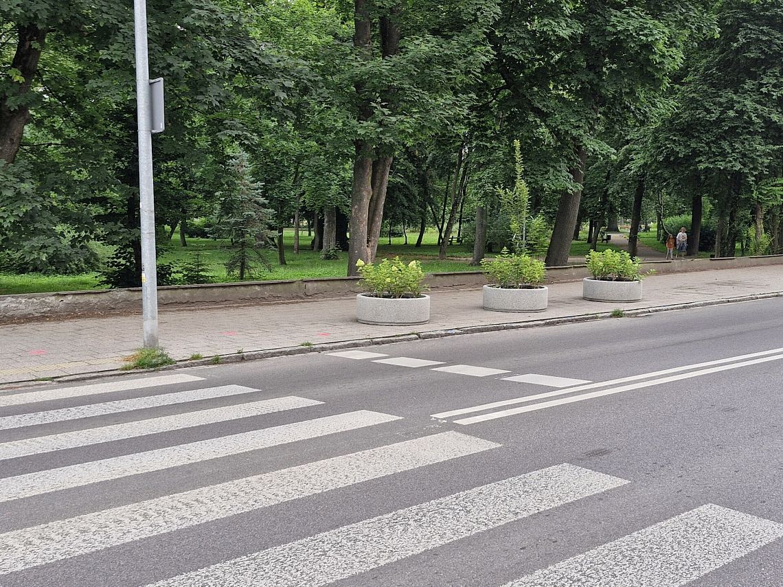 Dodatkowe działania objęły także przejścia dla pieszych. Na wysepce przy przejściu w rejonie dworca kolejowego oraz na przejściu przy ulicy Wojska Polskiego ustawiono donice z niskopienną zielenią. Mają one zapobiec nielegalnemu parkowaniu pojazdów w bezpośrednim sąsiedztwie pasów, co często ogranicza widoczność i stwarza zagrożenie dla pieszych wychodzących zza zaparkowanych aut.