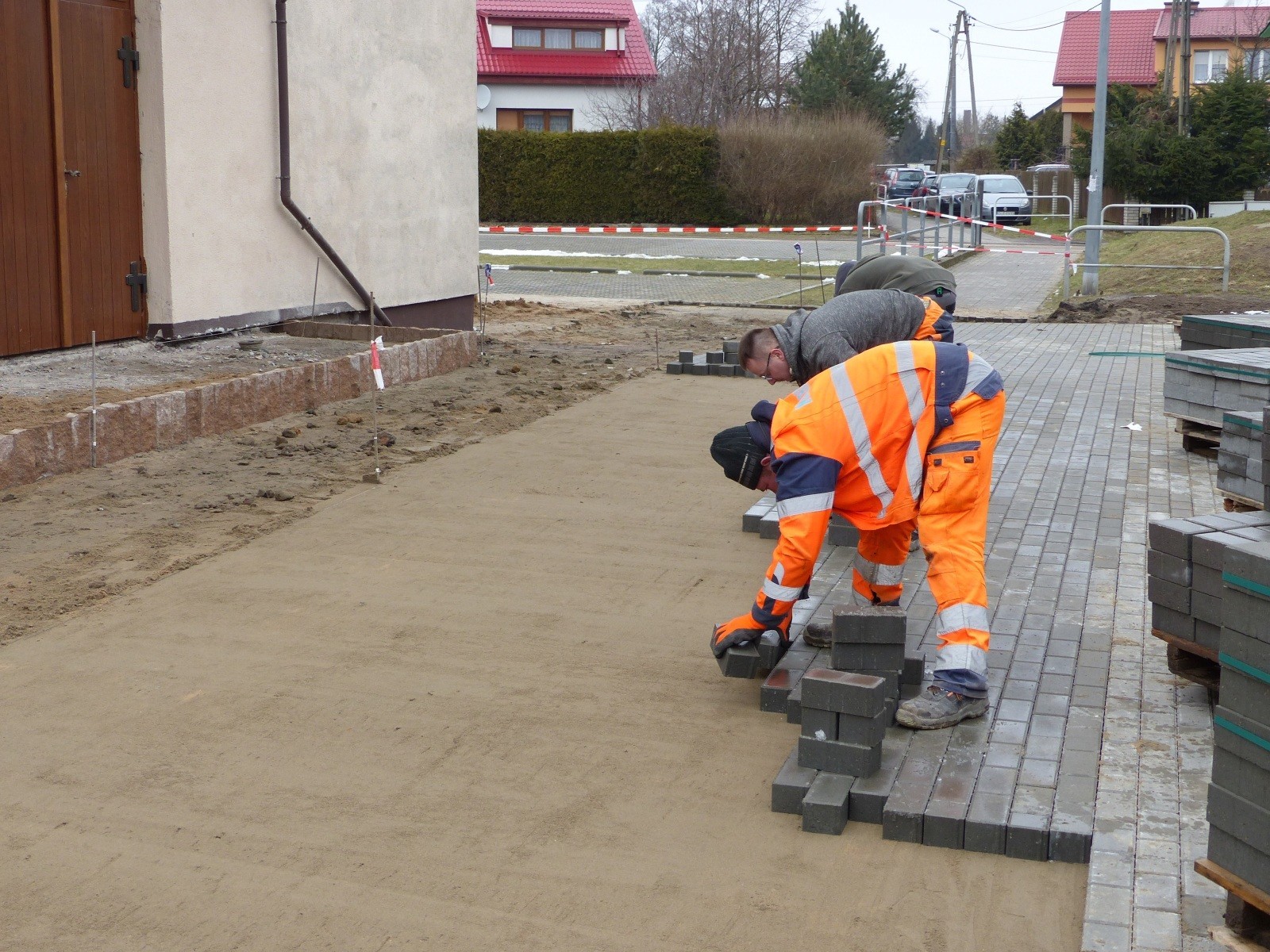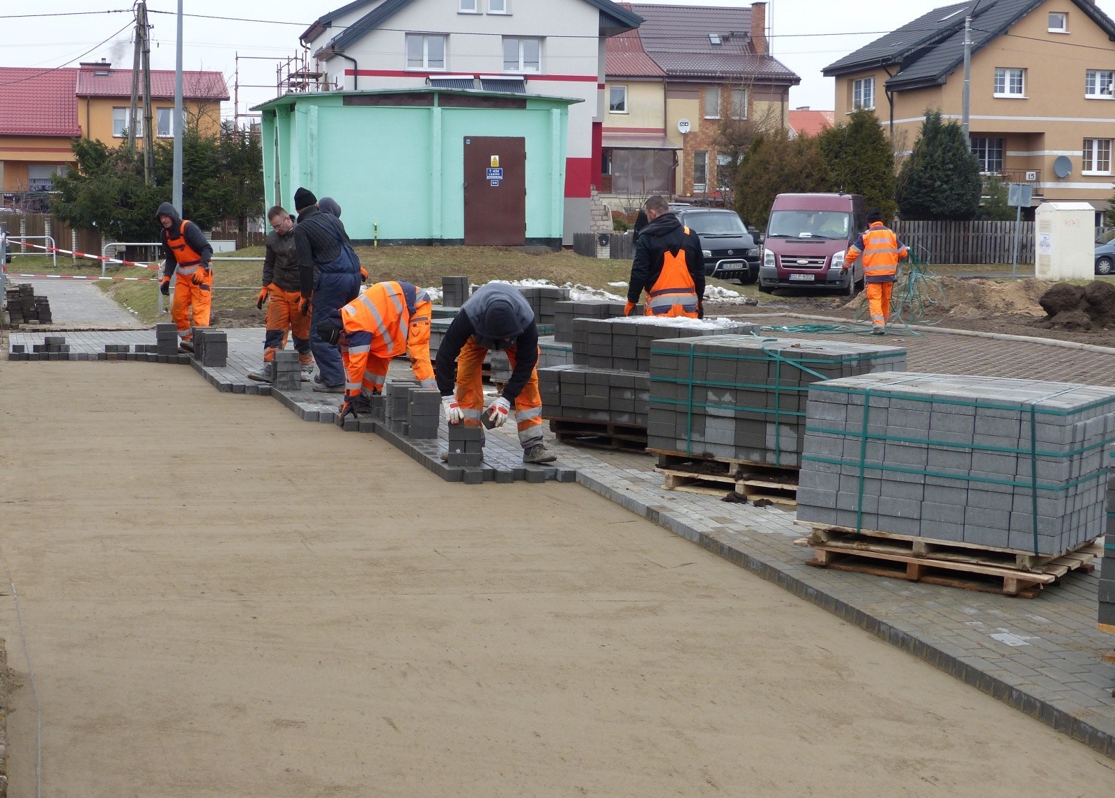 Trwa budowa drogi dojazdowej i parkingu przy ul. Kasztanowej przed kościołem pw. Miłosierdzia Bożego. Miejsca postojowe wyłożone będą płytami ażurowymi, droga dojazdowa szarą kostką betonową. Drogową inwestycję wykonuje lokalna firma MAXBRUK.