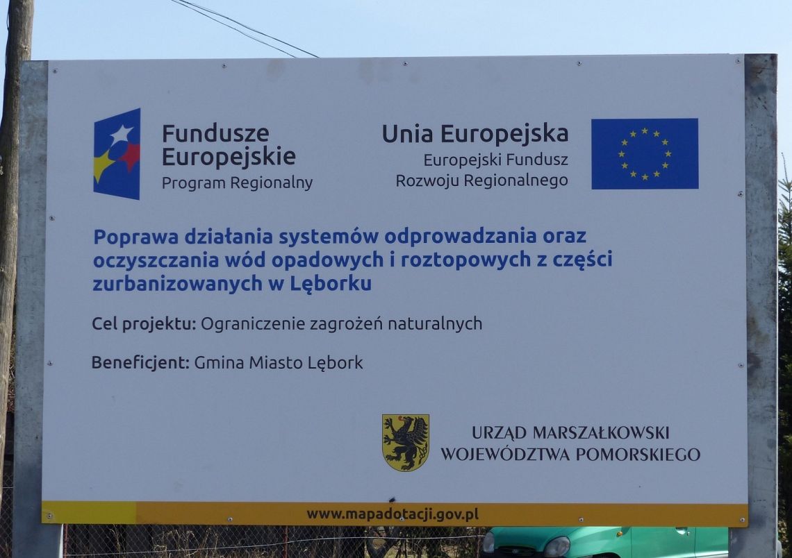 Nowa kanalizacja na ulicy Sportowej to część większego zadania realizowanego w ramach wartego prawie 4,9 mln zł projektu. Na jego realizacje miasto Lębork pozyskało ponad 3,3 mln zł dotacji (70%) w ramach Regionalnego Programu Operacyjnego Województwa Pomorskiego.
