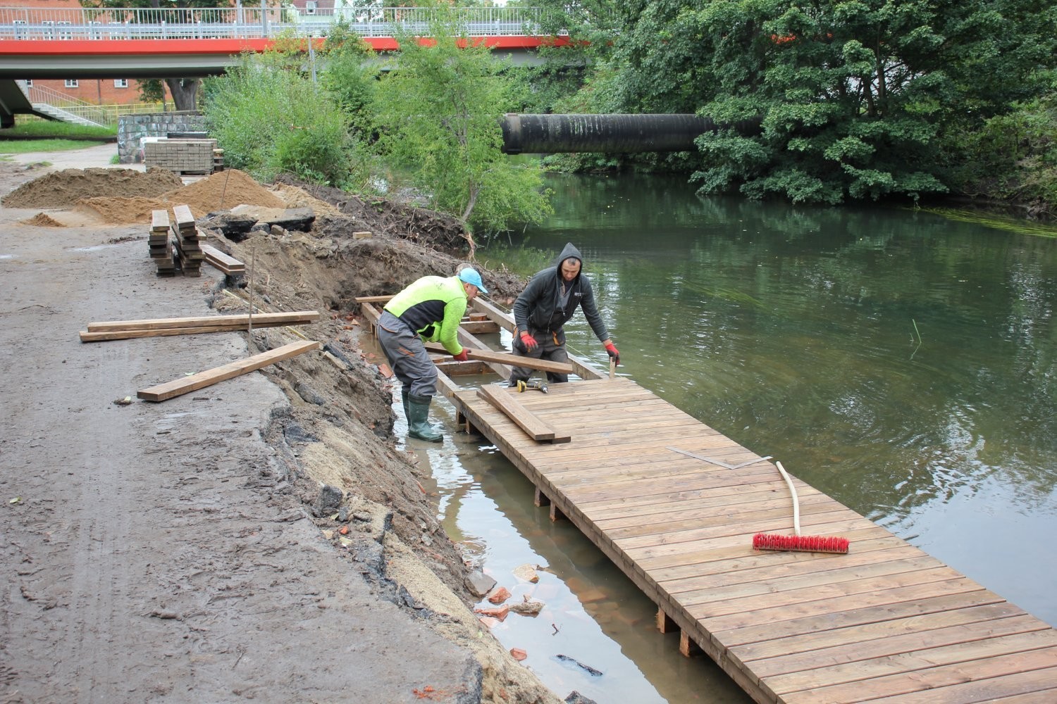 Lębork za kilka tygodni zyska pierwszą przystań kajakową. Przy bulwarze wzdłuż rzeki Łeby w okolicach zamku trwa budowa przystani kajakowej wraz z przenoską. Kajakarze przypływający rzeką Łeba od strony Łęczyc będą mogli skorzystać z pomostu, przenieść kajaki przez bulwar i zwodować je na pobliskiej rzece Okalicy. Stamtąd będą mogli dalej ruszyć w kierunku rzeki Łeby. Przystań kajakowa pozwoli na bezpieczne i wygodne ominięcie jazu przy zamku i kanału młyńskiego oraz stanie się miejscem, gdzie w komfortowych warunkach można będzie rozpocząć lub zakończyć kajakowy spływ.