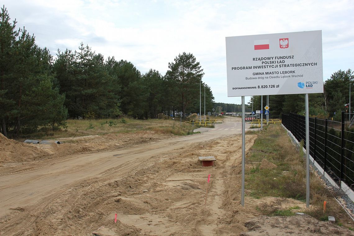 Na dzielnicy „Lębork Wschód” trwa budowa 10 dróg. Miasto Lębork pozyskało na ten cel 8 mln 820 tys. 126 złotych dofinansowania z Rządowego Funduszu Polski Ład – Program Inwestycji Strategicznych. To aż 95% wszystkich kosztów budowy w/w dróg na osiedlu. Wartość umów z wykonawcami opiewa łącznie na 9 mln 284 tys. 357 zł.