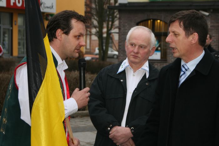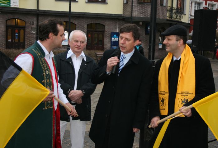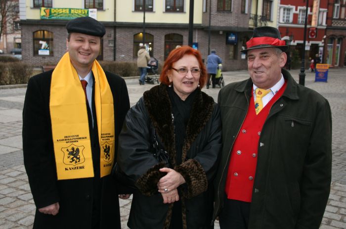 19 marca br. obchodziliśmy Dzień Jedności Kaszubów. W tym dniu czarno-żółta kaszubska flaga zawisła m.in. na ratuszu. Lębork znalazł się na szlaku przejazdu inicjatorów wręczania kaszubskich flag mieszkańcom 10 pomorskich miejscowości.   Organizatorzy, Marek Wantoch-Rekowski i Henryk Telesiński po powitaniu przez władze samorządowe i przedstawicieli organizacji kaszubskich wręczali flagi zebranym i mieszkańcom miasta. Zapraszali ich do Kartuz, gdzie 21 marca br. odbędą się obchody Dnia Jedności Kaszubów .