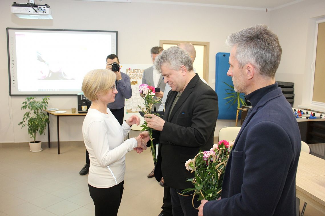 Z okazji obchodzonego 21 listopada Dnia Pracownika Socjalnego Burmistrz Lęborka Witold Namyślak odwiedził pracowników Środowiskowego Domu Samopomocy „Lwiątko”. W spotkaniu z pracownikami placówki mającej obecnie pod opieką 33 dorosłe osoby z niepełnosprawnościami uczestniczył także Przewodniczący Rady Miejskiej Jarosław Litwin, Sekretarz Miasta Marian Kurzydło oraz kierownik Referatu Spraw Społecznych Sławomir Tutakowski. Na ręce Jarosława Klassy, kierownika ŚDS „Lwiątko” burmistrz złożył życzenia i słowa uznania dla pracowników tej ważnej dla lokalnej społeczności placówki.