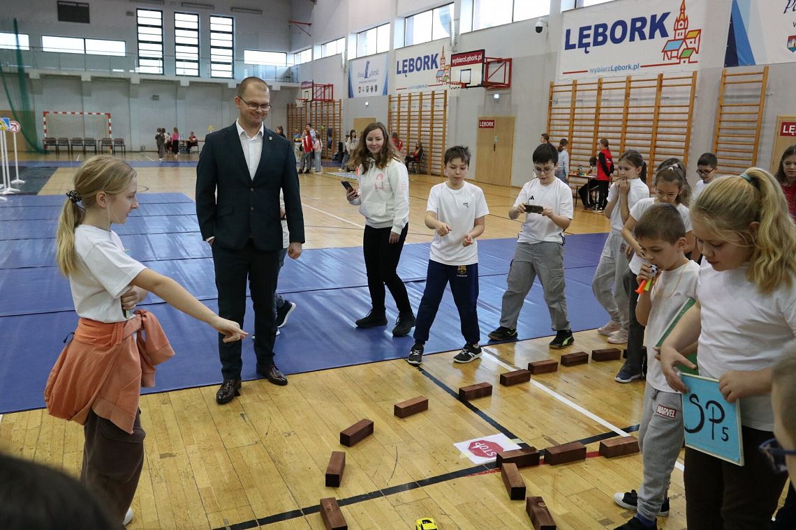 Miejska Hala Sportowa w Lęborku zamieniła się w prawdziwe centrum rowerowych emocji. W ramach projektu „Misja Bezpieczeństwo – Rowerowy Świat Lęborczan” zorganizowany został piknik edukacyjny skierowany do uczniów klas czwartych szkół podstawowych. W wydarzeniu uczestniczyli Burmistrz Miasta Lęborka Jarosław Litwin oraz Zastępca Burmistrza Krzysztof Król, którzy z zaangażowaniem kibicowali młodym uczestnikom zabawy i rywalizacji.