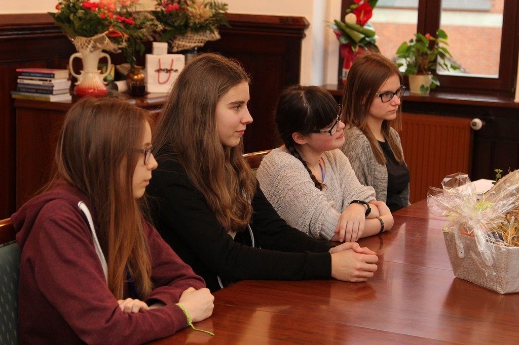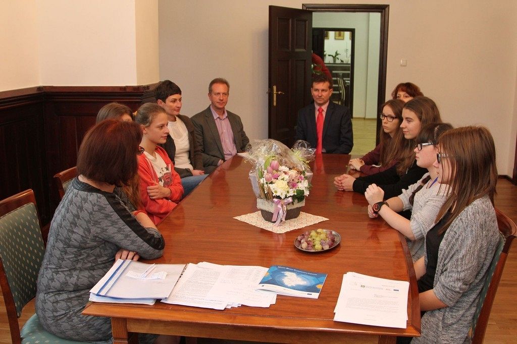 W lęborskim Urzędzie Miejskim, na zaproszenie Burmistrza Miasta Witolda Namyślaka, odbyło się spotkanie uczniów z Gimnazjum nr 1 biorących udział w projekcie Eduscience.