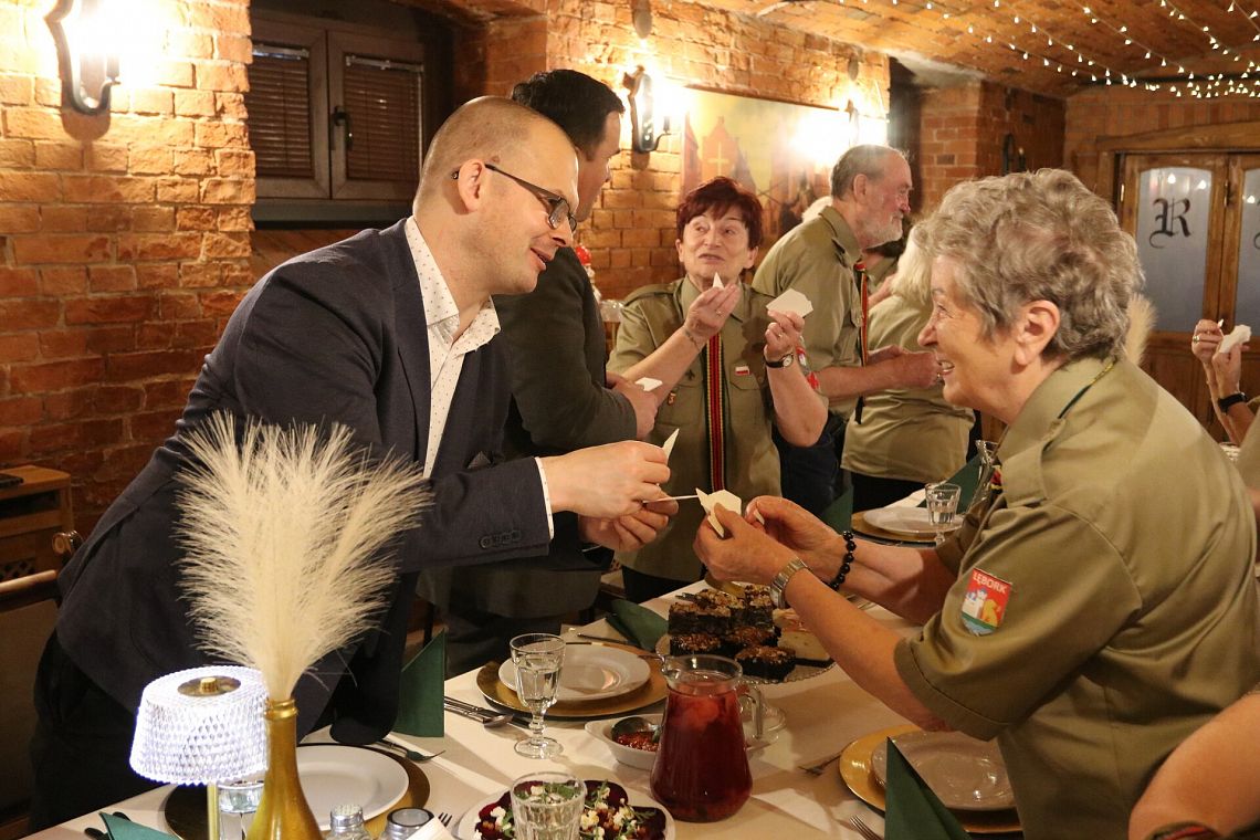 W świątecznej, wypełnionej wzajemną życzliwością atmosferze odbyło się spotkanie opłatkowe Harcerskiego Kręgu Seniorów „Dęby”. To tradycja, która od lat integruje lęborskich harcerzy oraz przyjaciół środowiska harcerskiego. Życzenia świąteczne przekazali harcerzom i podzielili się opłatkiem burmistrz Miasta Lęborka Jarosław Litwin, zastępca burmistrza Krzysztof Król i starosta lęborski Tomasz Litwin. Wśród gości były także phm. Agnieszka Kłosowska, komendant Hufca ZHP Lębork im. Polskich Olimpijczyków i pwd. Agata Spretka, skarbnik hufca. Przewodniczącą Harcerskiego Kręgu Seniorów „Dęby” jest dh Małgorzata Bresler.