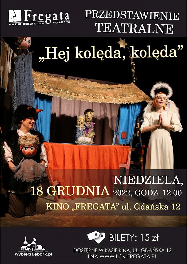 Lęborskie Centrum Kultury “Fregata” zaprasza na przedstawienie teatralne dla najmłodszych widzów. Spektakl pod tytułem “Hej kolęda, kolęda” w wykonaniu Teatru Władca Lalek odbędzie się w niedzielę, 18 grudnia 2022, w sali Kina “Fregata” przy ulicy Gdańskiej 12 w Lęborku. Początek o godzinie 12:00. Bilety w cenie 15 złotych dostępne są w kasie kina oraz za pośrednictwem strony internetowej www.lck-fregata.pl.