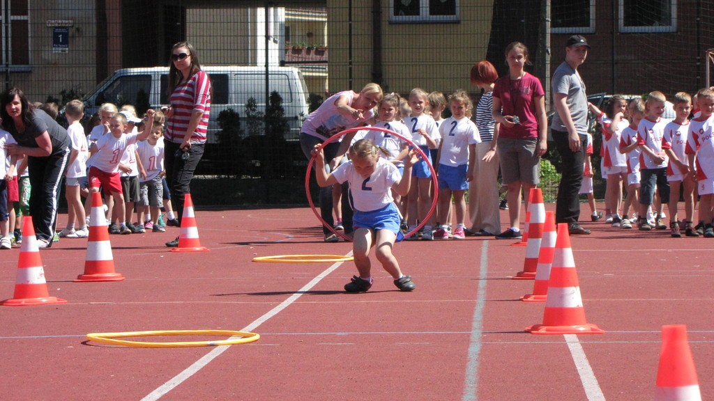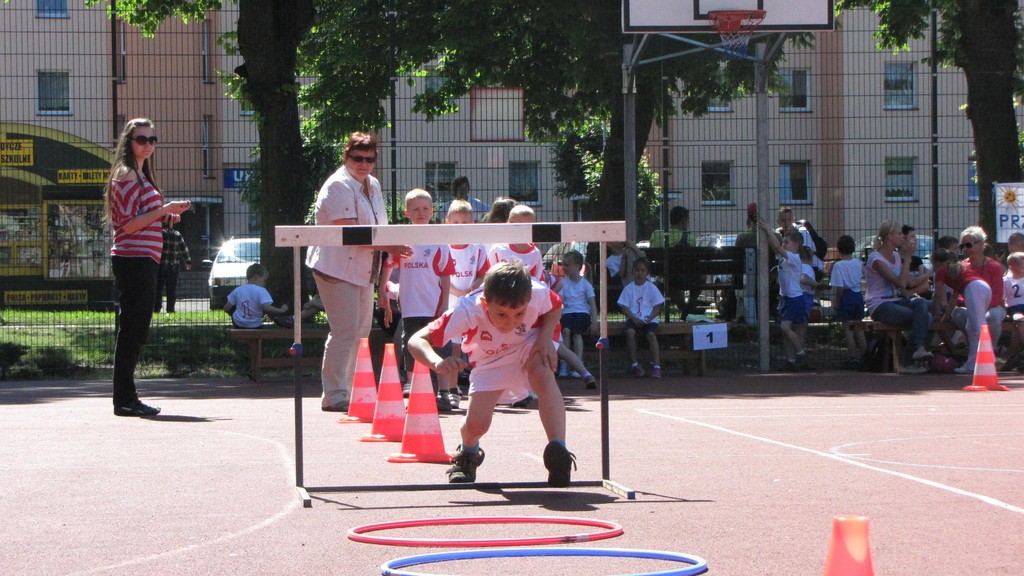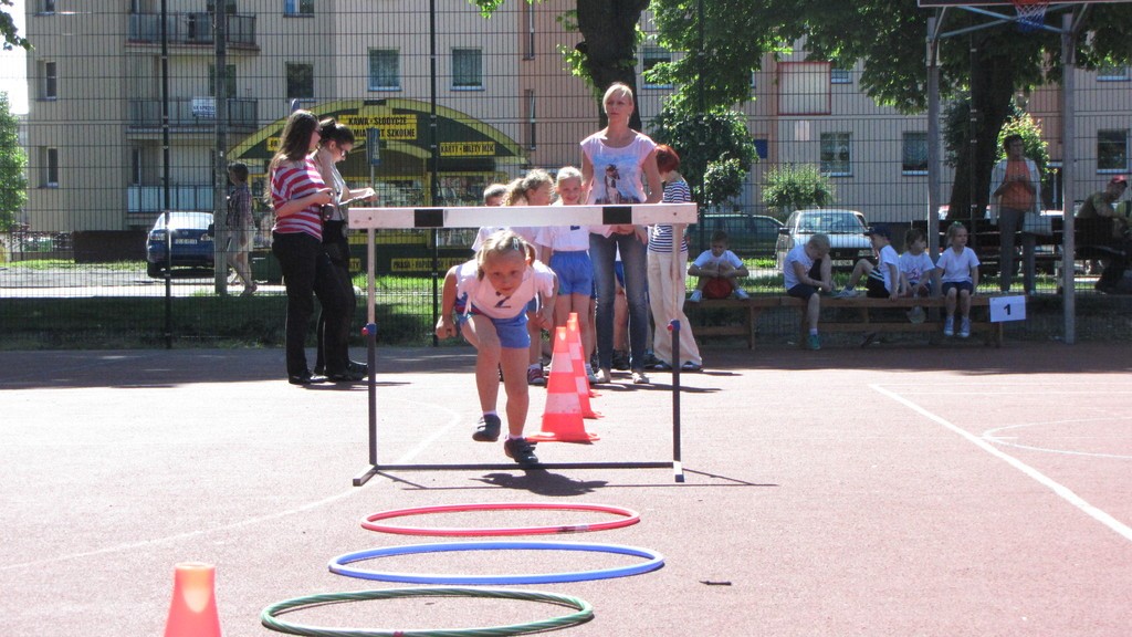 Drużyna każdego przedszkola składała się z 20- tu zawodników (10 dziewcząt i 10 chłopców). Dzieci wzięły udział w 5 zabawach sportowych: „Sadzenie ziemniaków”, „Tor przeszkód”, ,,Tworzenie figur geometrycznych”,  „Celowanie do okienka” oraz „Bieg z przechodzeniem  przez hula hop”.