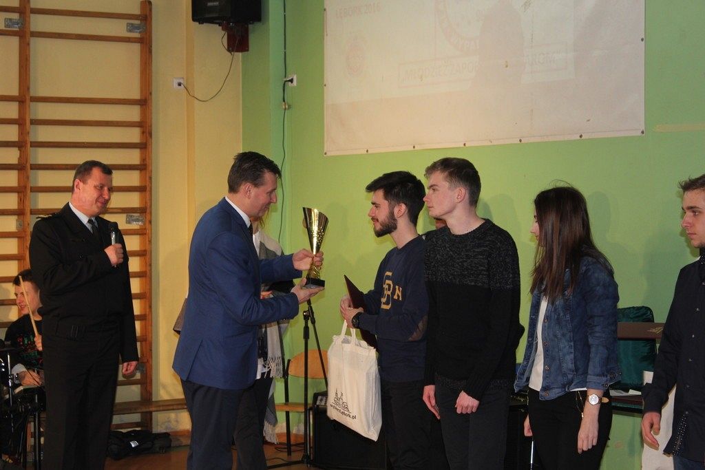 W dniu 17.03.2016 r w Gimnazjum Nr 1 przeprowadzono Turniej Wiedzy Pożarniczej pod hasłem "Młodzież Zapobiega Pożarom". Organizatorami konkursu byli Burmistrz Miasta Lęborka, Ochotnicza Straż Pożarna, Państwowej Straży Pożarnej oraz Gimnazjum Nr 1 w Lęborku.