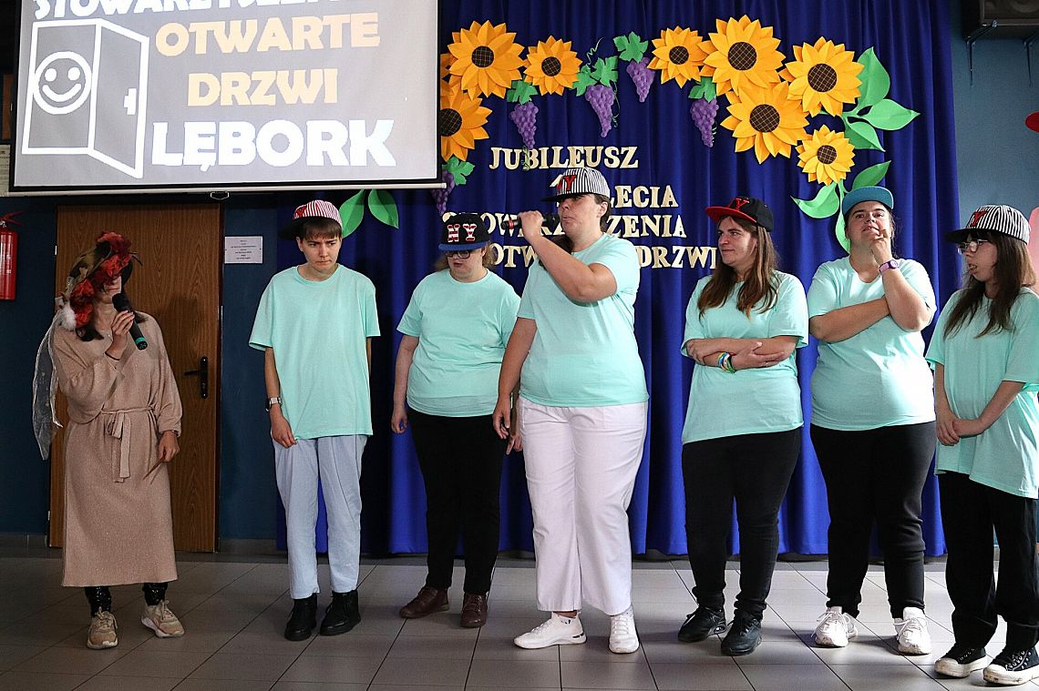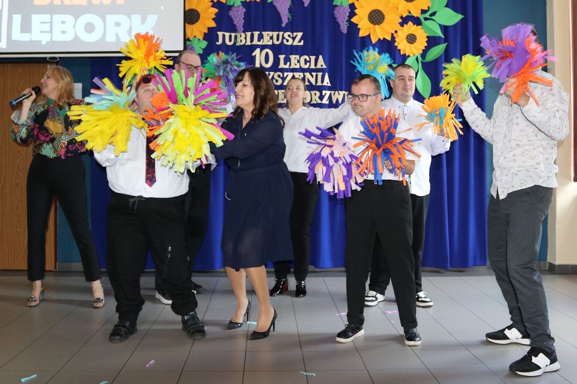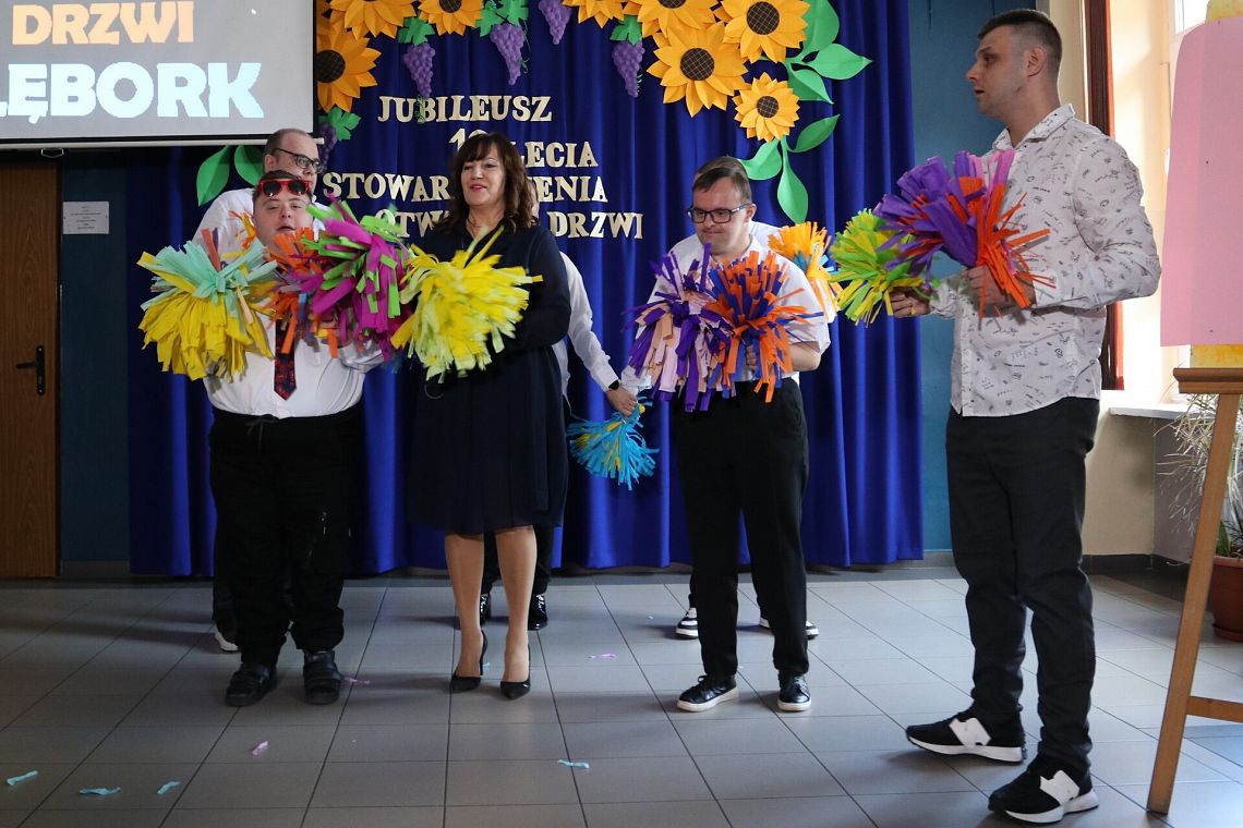 Występ wokalno – taneczny z przesłaniem o mocy przyjaźni rozpoczął a wspólne wykonanie hitu zespołu Feel pt. „Pokonaj siebie” zakończyło uroczystą galę z okazji 10-lecia Stowarzyszenia Przyjaciół Osób Niepełnosprawnych przy Specjalnym Ośrodku Szkolno – Wychowawczym w Lęborku „Otwarte Drzwi”. Wydarzenie zgromadziło licznych gości, przyjaciół oraz osoby wspierające inicjatywę od lat. Wśród gości jubileuszu był burmistrz Miasta Lęborka Jarosław Litwin, który wraz z serdecznymi życzeniami przekazał na ręce prezes Zarządu stowarzyszenia Katarzyny Mojsiewicz pamiątkowy grawerton i kosz pełen słodkości.