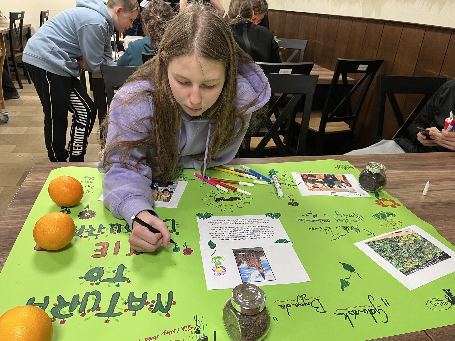 Uczniowie analizując swój dzień zadawali sobie pytania, jak można realizować cele zrównoważonego rozwoju w codziennym życiu. Towarzyszyło nam też motto „Bogactwo natury - odkrywamy odkryte” oraz„Zero Waste”. Podczas praktycznych warsztatów uczniowie sami produkowali naturalne środki czystości np.: sól do kąpieli, mydło, naturalne odświeżacze powietrza oraz uczestniczyli w warsztatach Biophilic design. Odkrywając bogactwa jakie daje nam natura uczniowie udali się na spacer do lasu oraz na plażę, aby tam zebrać materiały i zainspirować się przyrodą do działań projektowych.