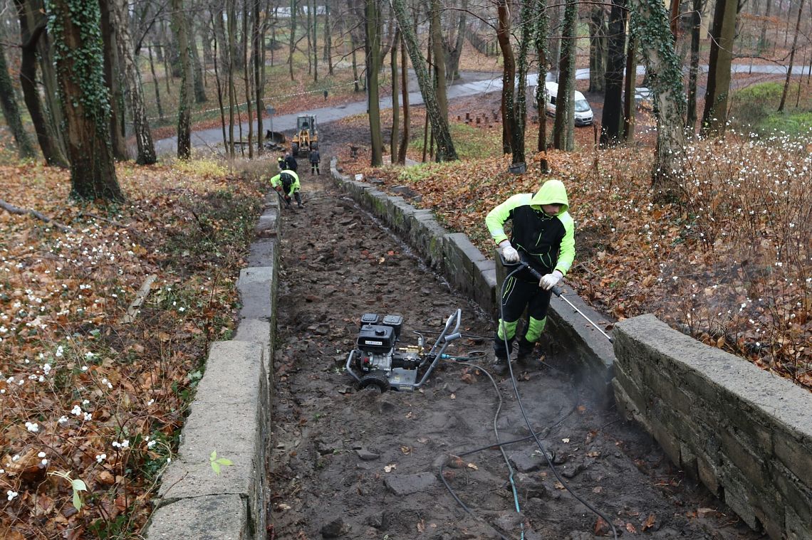 Trwa realizacja inwestycji polegającej na remoncie schodów w parku im. Bolesława Chrobrego. Z końcem listopada br. zakończone zostały prace związane z rozbiórką schodów i czyszczeniem murków.