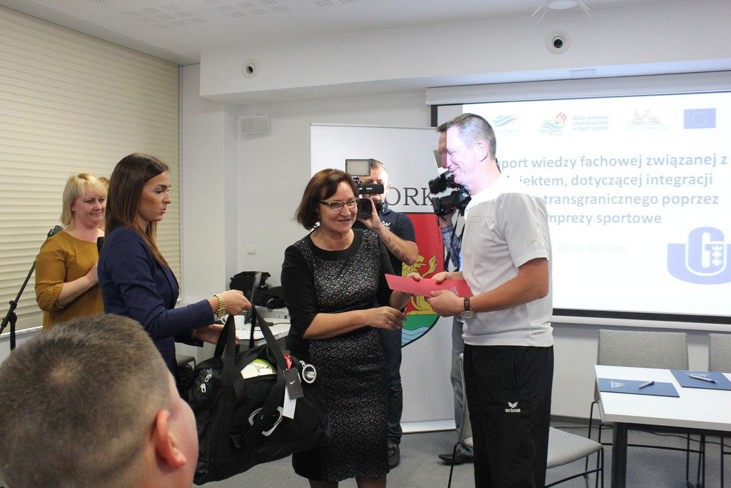 17 października br. w sali konferencyjnej Inkubatora Przedsiębiorczości w Lęborku odbyła się konferencja zamykająca projekt „Baltic Rally – bałtyckie mistrzostwa amatorów w grach zespołowych” Program Południowy Bałtyk. W konferencji uczestniczyli przedstawiciele partnerów projektu, tj. Gminy Miasto Lębork, miasta Kretinga z Litwy, Akademickiego Związku Sportowego z Greifswaldu w Niemczech oraz tzw. organizacji stowarzyszonych, tj. Lęborskiego Towarzystwa Sportowego „Unia” i Klubu Sportowego „Žalgiris” w Kretindze. Gościem specjalnym konferencji był Paweł Papke - polski siatkarz, wielokrotny reprezentant Polski w piłce siatkowej mężczyzn, obecnie Poseł na Sejm RP.