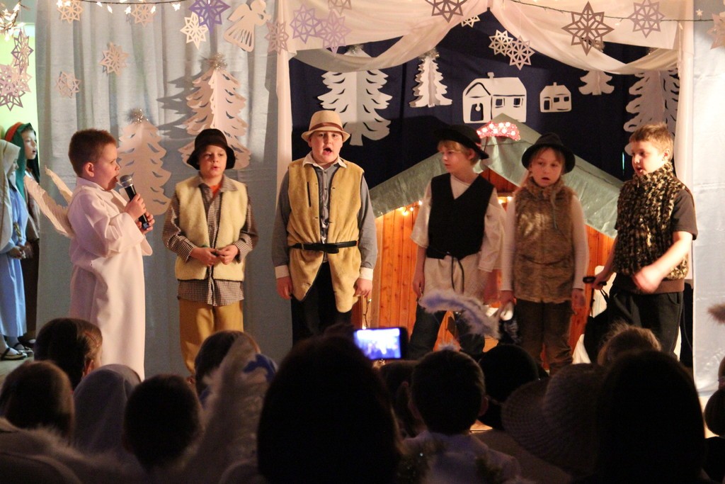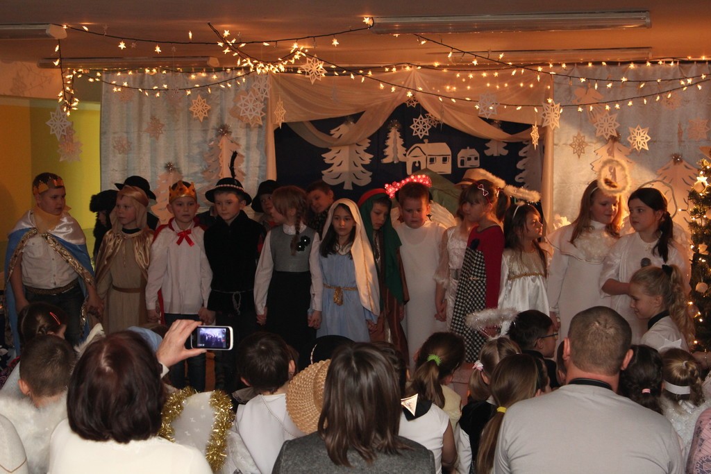Wspólne kolędowanie poprzedzone zostało przedstawieniem jasełkowym, które przed uczestnikami konkursu zaprezentowała grupa uczniów z klasy II F SP nr 8, przygotowana przez p. p. Gintowt - Dziewałtowską. Komisja konkursowa oceniła występy i przyznała: