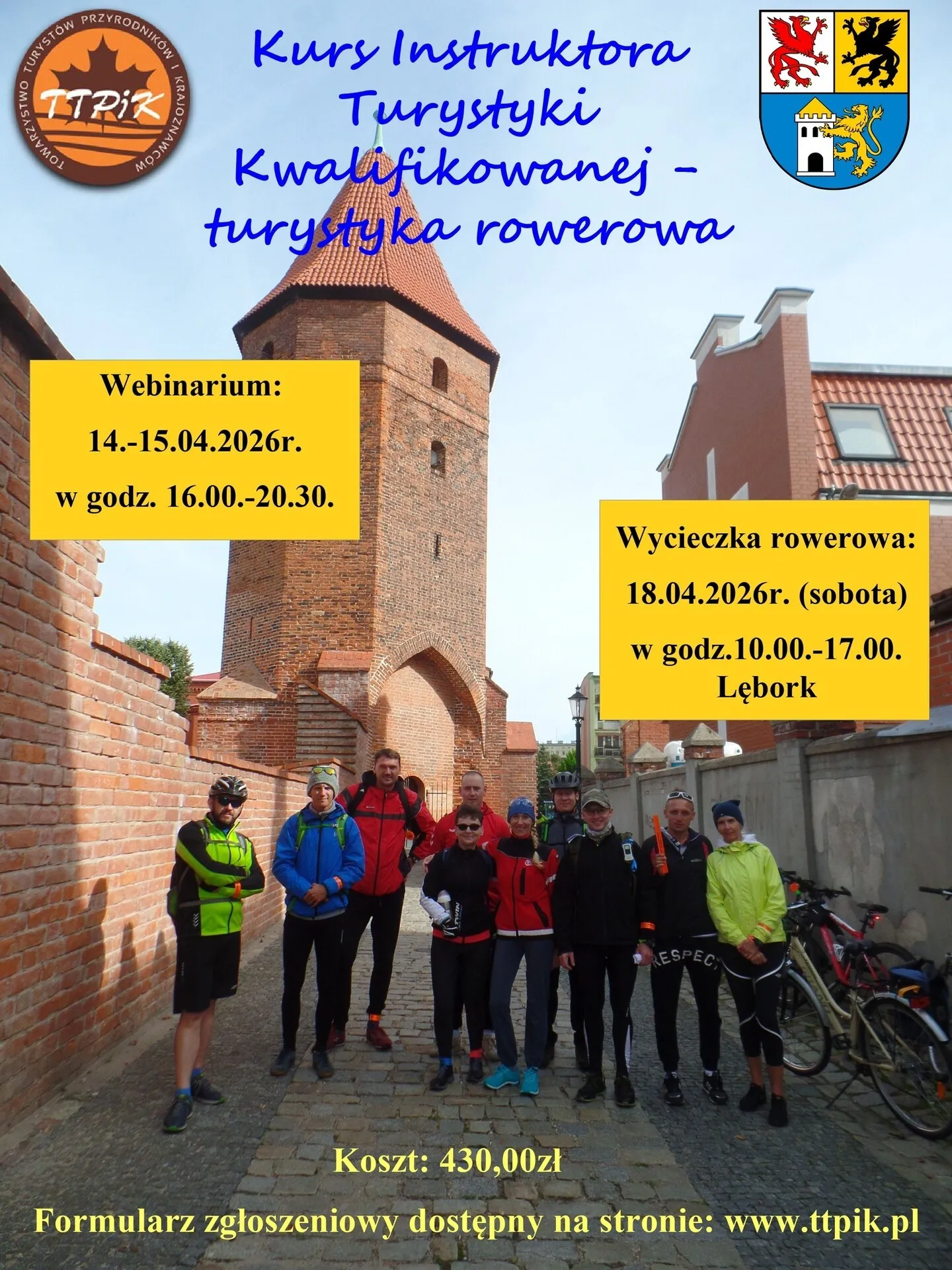 Egzamin w formie miejskiej wycieczki rowerowej odbędzie się 18 kwietnia 2026 r. (sobota) w godz. 10.00 - 16/17.00 w Lęborku.