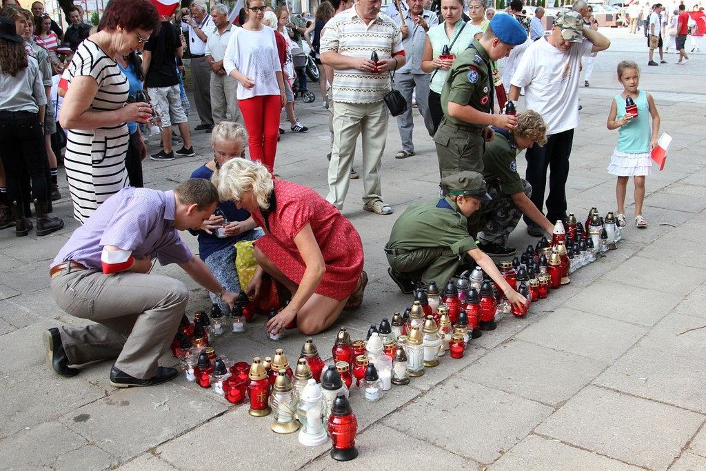 Następnie mieszkańcy udali się ulicą Staromiejską na Plac Pokoju, gdzie ze zniczy ułożono symbol Polski walczącej.