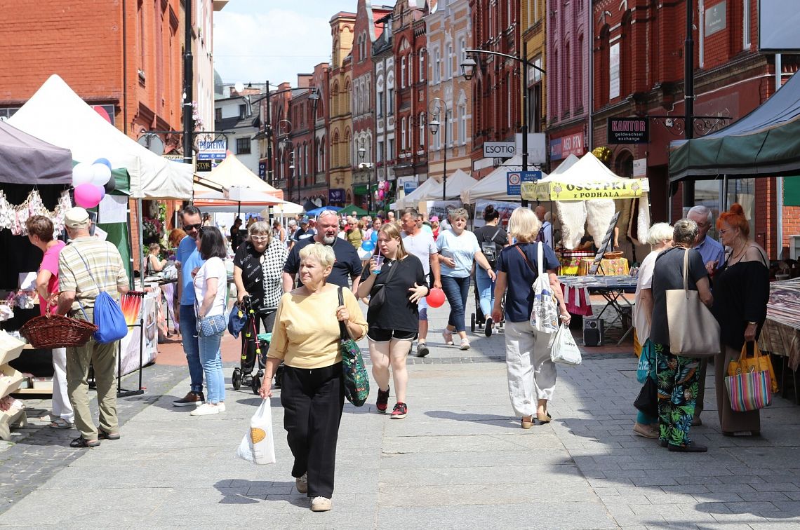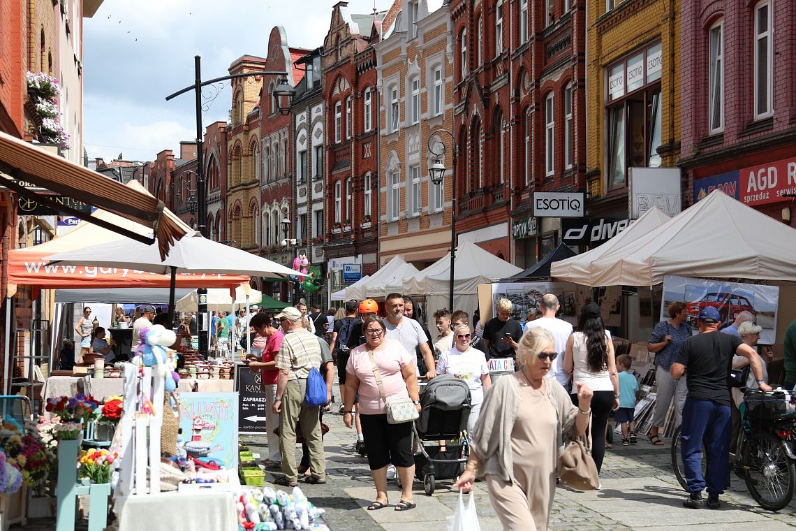 Od wczesnych godzin piątkowego poranka ulica Staromiejska zaczęła zapełniać się jarmarkowymi stoiskami, które swoim niezwykle różnorodnym asortymentem - rękodziełem artystycznym, sztuką ludową, starociami, zabawkami i kulinariami - przyciągały wielu spacerowiczów. Atmosfera typowego, żywego jarmarku!