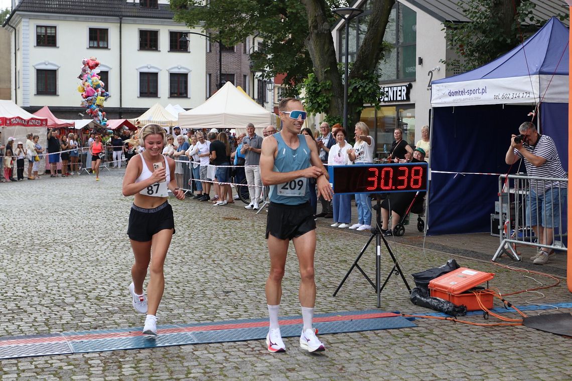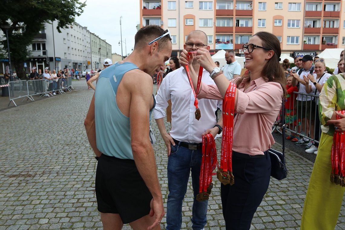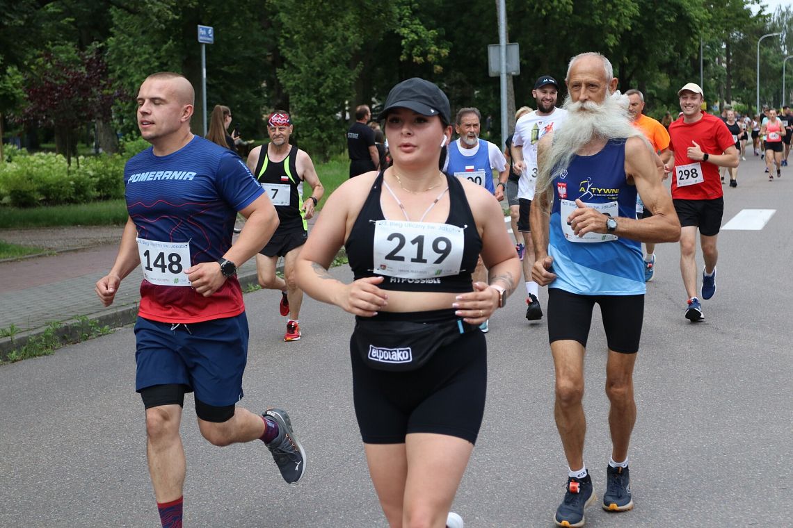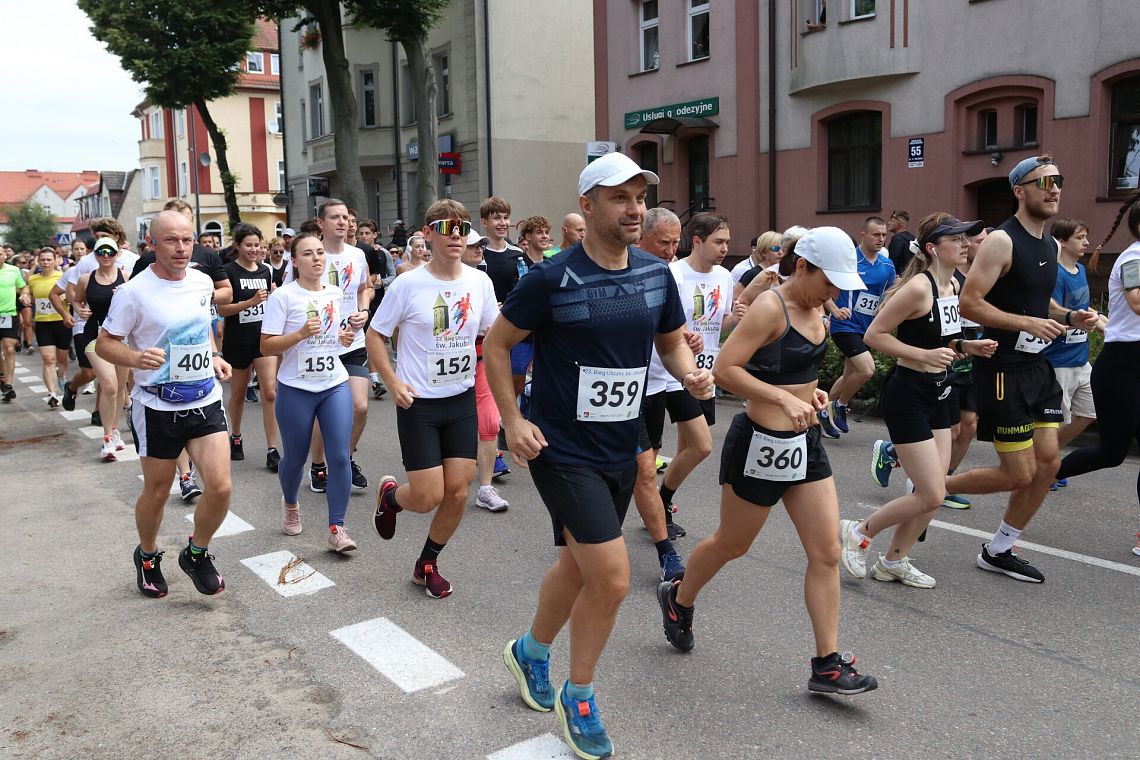 Po raz pierwszy na godziny przedpołudniowe przesunięty został Bieg Uliczny św. Jakuba - to był strzał w dziesiątkę! Wcześniejsza pora przysłużyła się frekwencji, bo 23. edycję głównego sportowego wydarzenia jarmarku ukończyło w regulaminowym limicie czasowym aż 516 zawodniczek i zawodników. Drugi rok z rzędu zwycięzcą został Adam Głogowski z UKS Ekonomika - Maratończyka Lębork/Mizuno Team, który liczącą 10 kilometrów trasę pokonał w rewelacyjnym czasie 30 minut i 40 sekund! Tuż za nim finiszował jego klubowy kolega Emil Dobrowolski (31:09), a podium uzupełnił Bogdan Semenowycz z Kijowa (31:20). Wśród kobiet triumfowała Monika Stachowska (Akademia Treningu Sportowego Stachowscy) z wynikiem 34:59, poprawiając ubiegłoroczne drugie miejsce. Drugie miejsce zajęła Monika Brzozowska (35:19, 12 Wielkopolska Brygada Wojsk Obrony Terytorialnej), trzecia była Nataliia Semenovych z Kijowa (35:30). Czwarte miejsce wywalczyła najlepsza z mieszkanek Lęborka, Katarzyna Pobłocka - Głogowska (36:27, UKS Ekonomik - Maratończyk Lębork). Najlepsi zostali uhonorowani na scenie na placu Pokoju, odbierając zasłużone gratulacje i premie pieniężne.