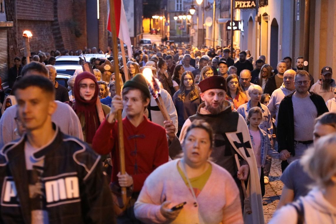 O wysoką frekwencję podczas wieczornego spaceru z duchami Krzyżaków można być spokojnym. Znawcy i miłośnicy lokalnej historii z Lęborskiego Bractwa Historycznego Magdalena i Marcin Ramczykowie zaciekawili setki mieszkańców niezwykłymi opowieściami z dziejowych zakamarków.