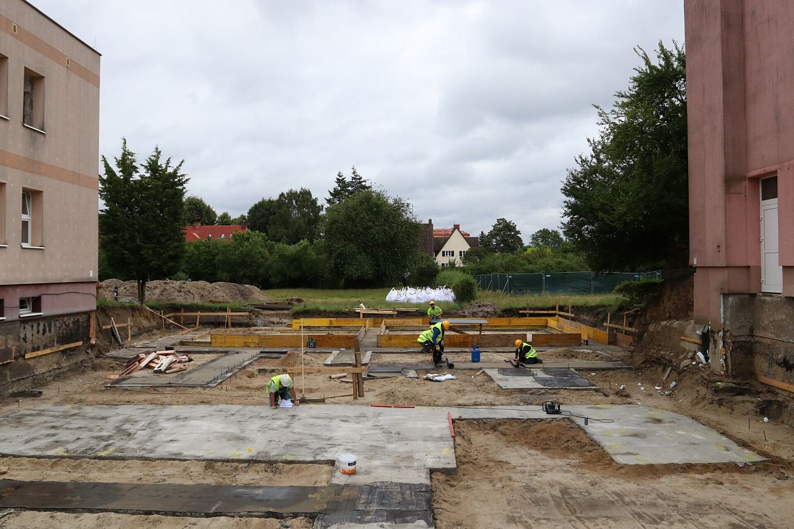 W czerwcu br. wykonawca – Przedsiębiorstwo Produkcyjno - Handlowo - Usługowe Szarafin Tomasz Szarafin ze Skórcza – oficjalnie przejął plac budowy. Prace rozpoczęto od usunięcia kolizji z siecią energetyczną oraz robót rozbiórkowych w „małej Ósemce”. Wykonano już również wykop pod łącznik między budynkami.