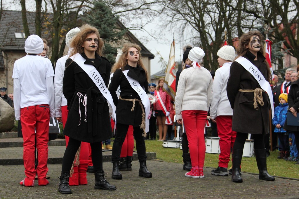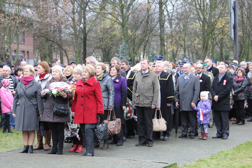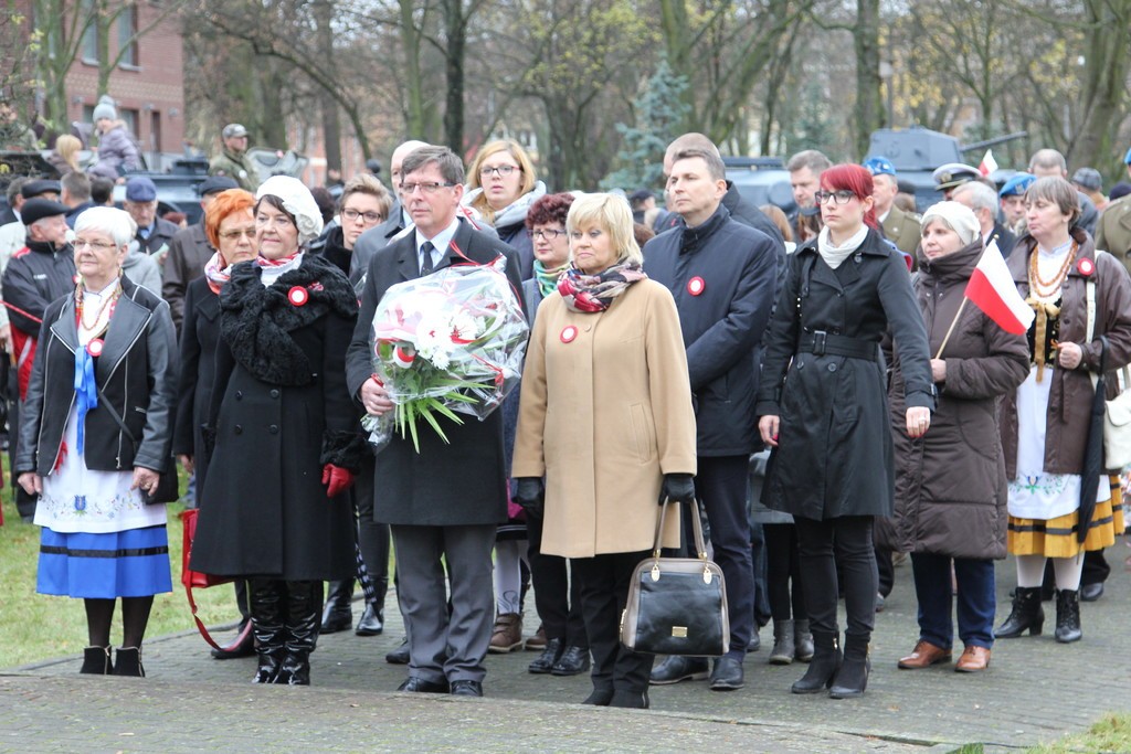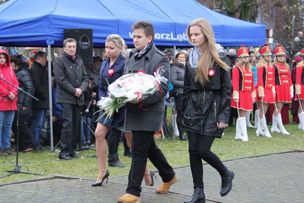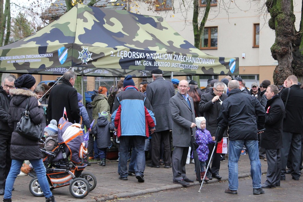 Pod Obeliskiem Niepodległości okolicznościowe przemówienie wygłosił Burmistrz Lęborka Witold Namyślak, który zachęcał do wspólnego świętowania. Następnie kapitan Michał Sobczuk odczytał Apel Pamięci, po którym nastąpiła salwa honorowa. Znakomity montaż słowno-muzyczny przygotowali uczniowie Szkoły Podstawowej nr 5 w Lęborku im. Wojska Polskiego. Uroczystości pod Obeliskiem zakończyła parada rekonstruktorów. Uczestnicy uroczystości mogli posilić się pyszną żołnierską grochówką przygotowaną przez 1 Lęborski Batalion Zmechanizowany. Po uroczystości odbył się również pokaz jeździecki przygotowany przez Stajnię Pałac Runowo i Pałac pod Bocianim Gniazdem. Były też przejażdżki w siodle, zabawy animacyjne w tym malowanie twarzy oraz konkursy z nagrodami.