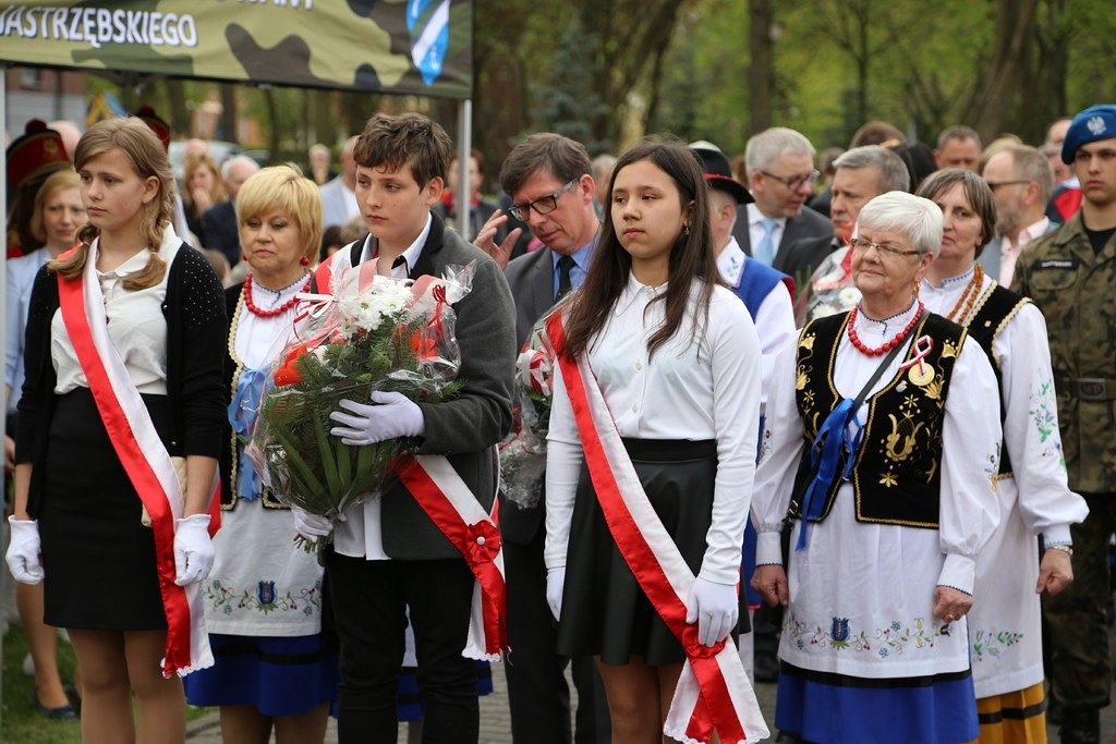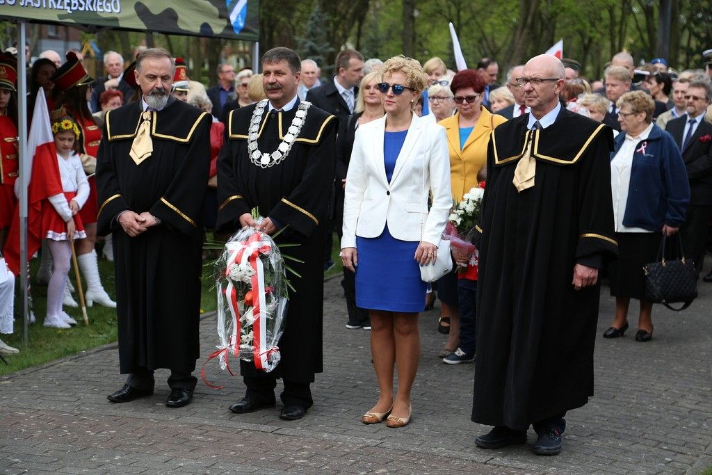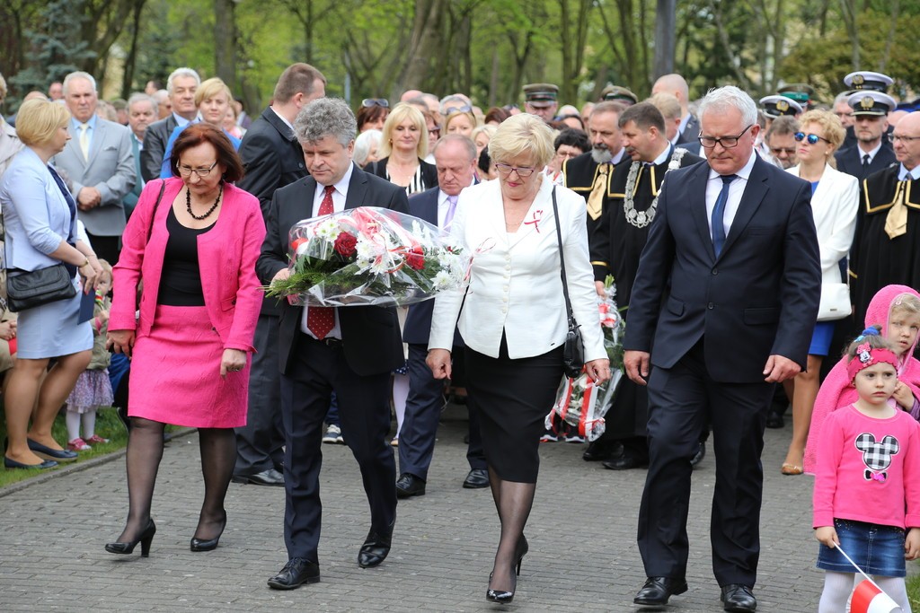 Uroczystości uświetniły występy uczniów z Gimnazjum nr 1, Orkiestry Dętej „Ziemia Lęborska” i Grupy Perkusyjnej Tremolo. W swoim wystąpieniu Burmistrz Miasta Witold Namyślak, wspomniał o znaczeniu Konstytucja 3 Maja i roli jaką odegrała w naszej historii. Przypomniał również o obchodzonej w tym roku 1050 rocznicy przyjęcia chrztu przez Polskę.