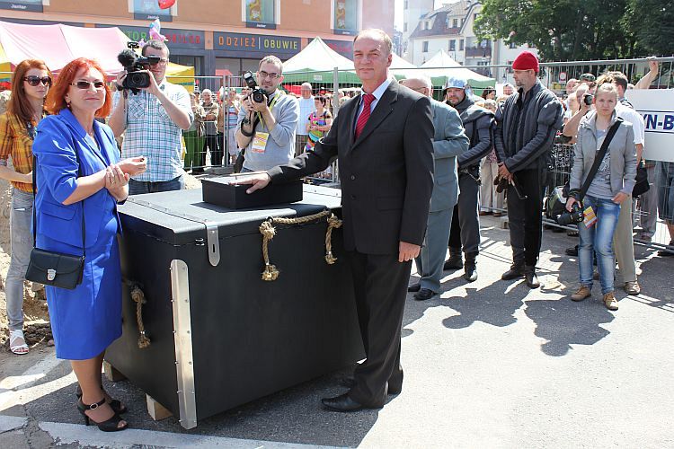 Na Placu zakopano też „Skrzynię Czasu" zawierającą teczki z pamiątkami i przesłaniem do przyszłości złożonym przez mieszkańców Lęborka czy instytucje przyszłym pokoleniom. Odkopanie skrzyni za 100 lat, w lipcu 2112 roku.