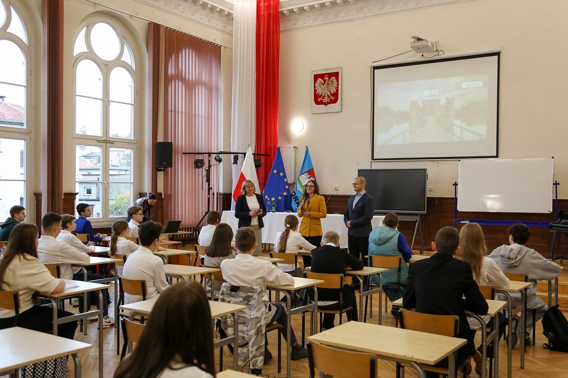 Uczniowie lęborskich szkół podstawowych wzięli dziś udział w wyjątkowej lekcji obywatelskiej przeprowadzonej przez posłankę RP Wioletę Tomczak oraz przedstawicieli Wszechnicy Sejmowej. W spotkaniu z uczniami, którego gospodarzem była Szkoła Podstawowa nr 3 w Lęborku uczestniczyli również burmistrz Lęborka Jarosław Litwin oraz dyrektor szkoły Mariola Małecka.
