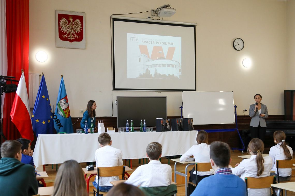 Wioleta Tomczak przybliżyła uczniom pracę posła i ustanawiane przez Sejm prawo mające wpływ także na życie młodzieży. W drugiej części spotkania przedstawiciele Wszechnicy Sejmowej przybliżyli młodzieży historię Sejmu i proces ustawodawczy. Finałem spotkania był wielki test wiedzy o parlamentaryzmie zakończonym wręczeniem nagród dla najlepszych uczniów.