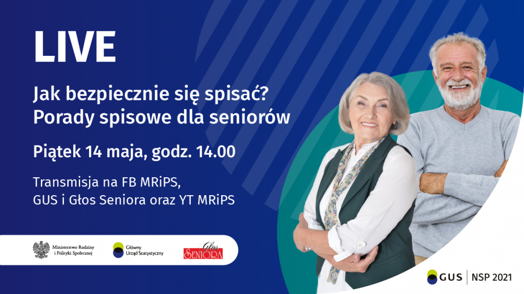 Ministerstwo Rodziny i Polityki Społecznej, Główny Urząd Statystyczny i „Głos Seniora” zaprasza na wydarzenie online transmitowane na profilach Facebook organizatorów, które odbędzie się w piątek 14 maja br. o godz. 14:00.