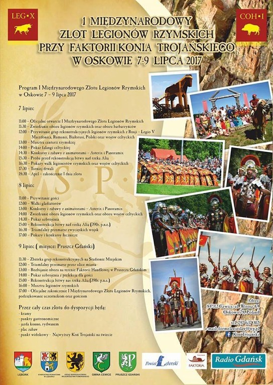Od piątku do niedzieli (7-9 lipca) na terenie Faktorii Rzymskiej Koń Trojański w Oskowie koło Cewic, odbędzie się I Międzynarodowy Zlot Legionów Rzymskich. Na Zlot swój przyjazd zapowiedziały legiony z Polski i z zagranicy - Rumunii, Rosji, Białorusi i Niemiec. Na miejscu będzie można poznać życie obozowe legionistów, formacje bojowe, umundurowanie, sprzęt i wiele innych atrakcji. Imprezę Honorowym Patronatem objął Burmistrz Lęborka Witold Namyślak.