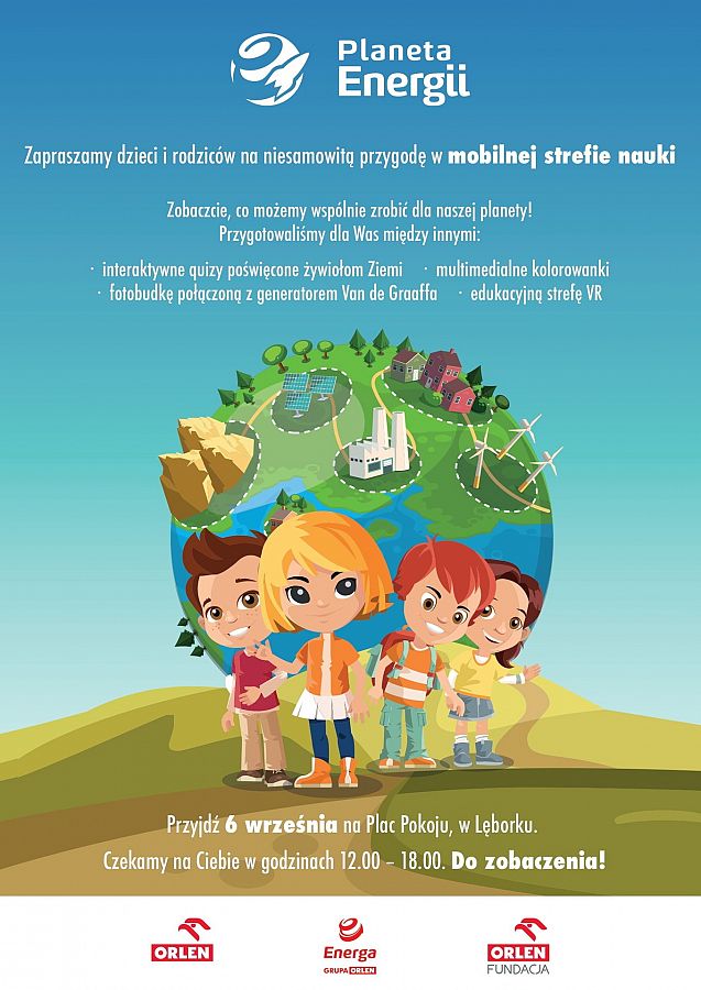 Przyjdź 6 września (poniedziałek) na Plac Pokoju w Lęborku, w godzinach 12.00 – 18.00. Czekają na Ciebie: interaktywne quizy poświęcone żywiołom Ziemi, multimedialne kolorowanki, fotobudka połączona z generatorem Van de Graaffa, a także edukacyjna strefa VR. Zobacz, co możemy wspólnie zrobić dla naszej planety!