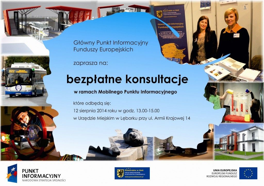 12 sierpnia br. w godz. 13:00-15:00 w Urzędzie Miejskim w Lęborku (w pomieszczeniu dawnej Resursy) odbędzie się spotkanie z przedstawicielami Punktu Informacyjnego Funduszy Europejskich.