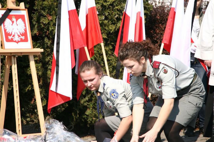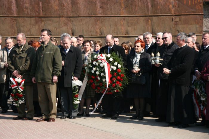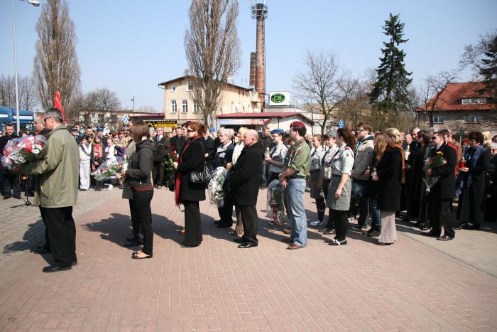 W miejscu tym zebrali się samorządowcy z Lęborka i Łeby, pracownicy lęborskich instytucji, dzieci i młodzież z lęborskich szkół, przedstawiciele służb mundurowych, duchowieństwo i mieszkańcy Lęborka. Odegrany został hymn państwowy, wspólną modlitwę poprowadził Ks. Dziekan dr Henryk Krenczkowski, po której zebrani złożyli kwiaty i zapalili znicze...