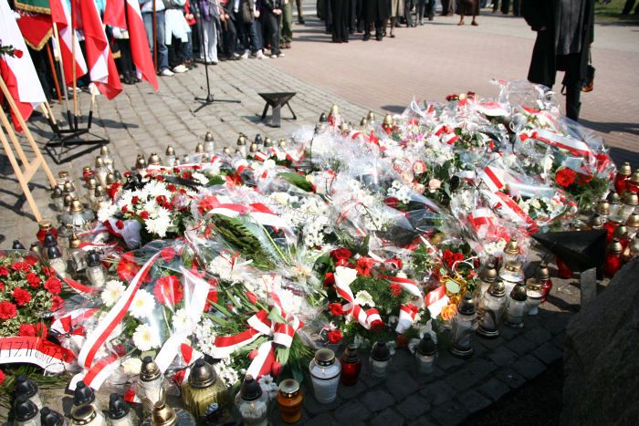 W dniu dzisiejszym, tj. 13 kwietnia o godz. 12.00 zabrzmiały syreny oraz dzwony w kościołach lęborskich. O tej samej godzinie rozpoczęła się uroczystość pod obeliskiem Jana Pawła II, obok którego umieszczona została tablica-nekrolog śp. Ofiar katastrofy lotniczej pod Smoleńskiem.