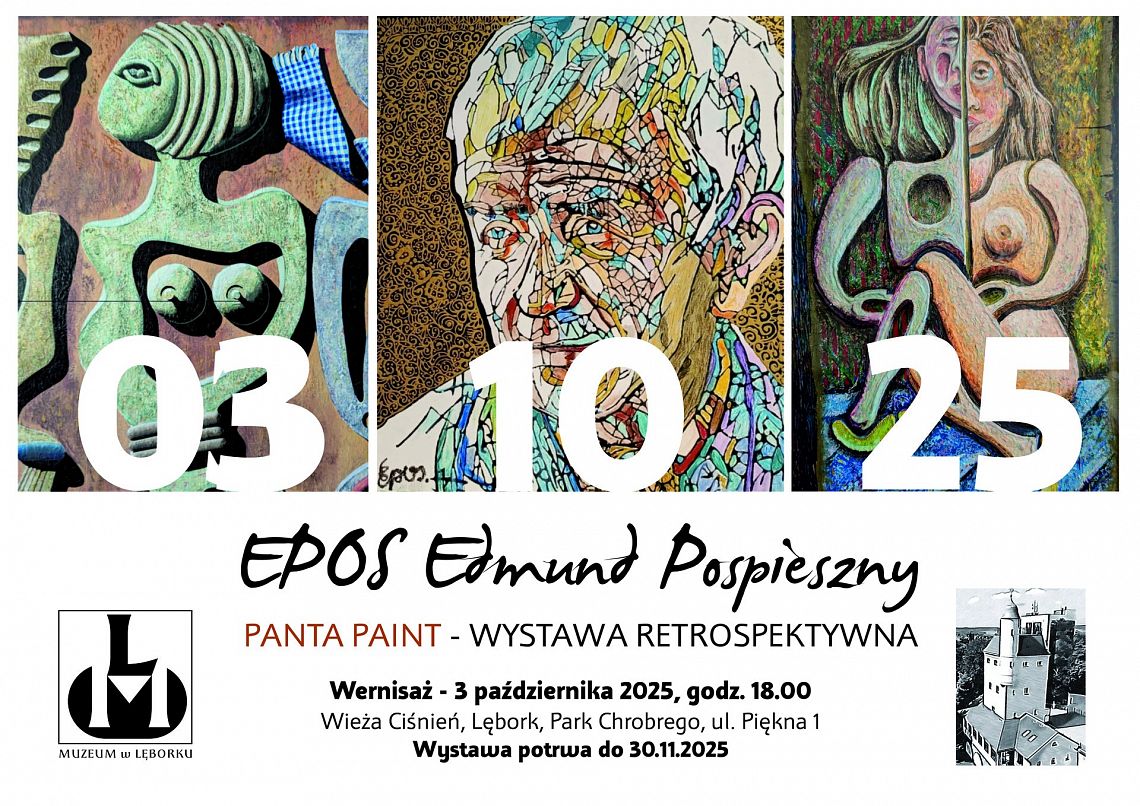 W tym roku „Weekendu seniora z kulturą” odbędzie się w pierwszy weekend października. W Lęborku otworzy go wystawa retrospektywna prac Edmunda Pospiesznego pt. „Panta Paint”. To będzie okazja, by zanurzyć się w bogatą twórczość tego artysty - jego obrazy, wizje i kolory zebrane w jednym miejscu. Otwarcie wystawy w piątek, 3 października 2025 r. o godz. 18.00 w Wieży Ciśnień, w parku Chrobrego. Prace będzie można oglądać do 30 listopada 2025 r.