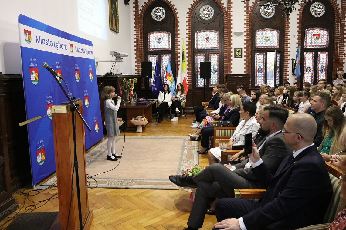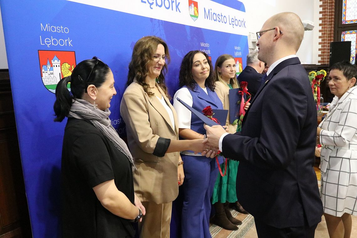 Sala Rajców Urzędu Miejskiego w Lęborku zgromadziła we wtorek 14 października 2025 r. dyrektorów, nauczycieli, uczniów i pracowników oświaty na miejskich obchodach Dnia Edukacji Narodowej. Z zaproszenia gospodarza uroczystości, burmistrza Miasta Jarosława Litwina, skorzystali starosta lęborski Tomasz Litwin, wiceprzewodnicząca Rady Miejskiej Halina Łukian wraz z radnymi Rady Miejskiej. Władze Kuratorium Oświaty w Gdańsku reprezentowała st. wizytator Beata Sobańska – Zając z Delegatury w Słupsku. Związek Nauczycielstwa Polskiego reprezentowany był przez Halinę Ługowską – Siłkę, prezes Oddziału w Lęborku. Uroczystość była wyrazem uznania dla pracy wszystkich osób zaangażowanych w rozwój edukacji w Lęborku – od nauczycieli i dyrektorów po uczniów i ich opiekunów.