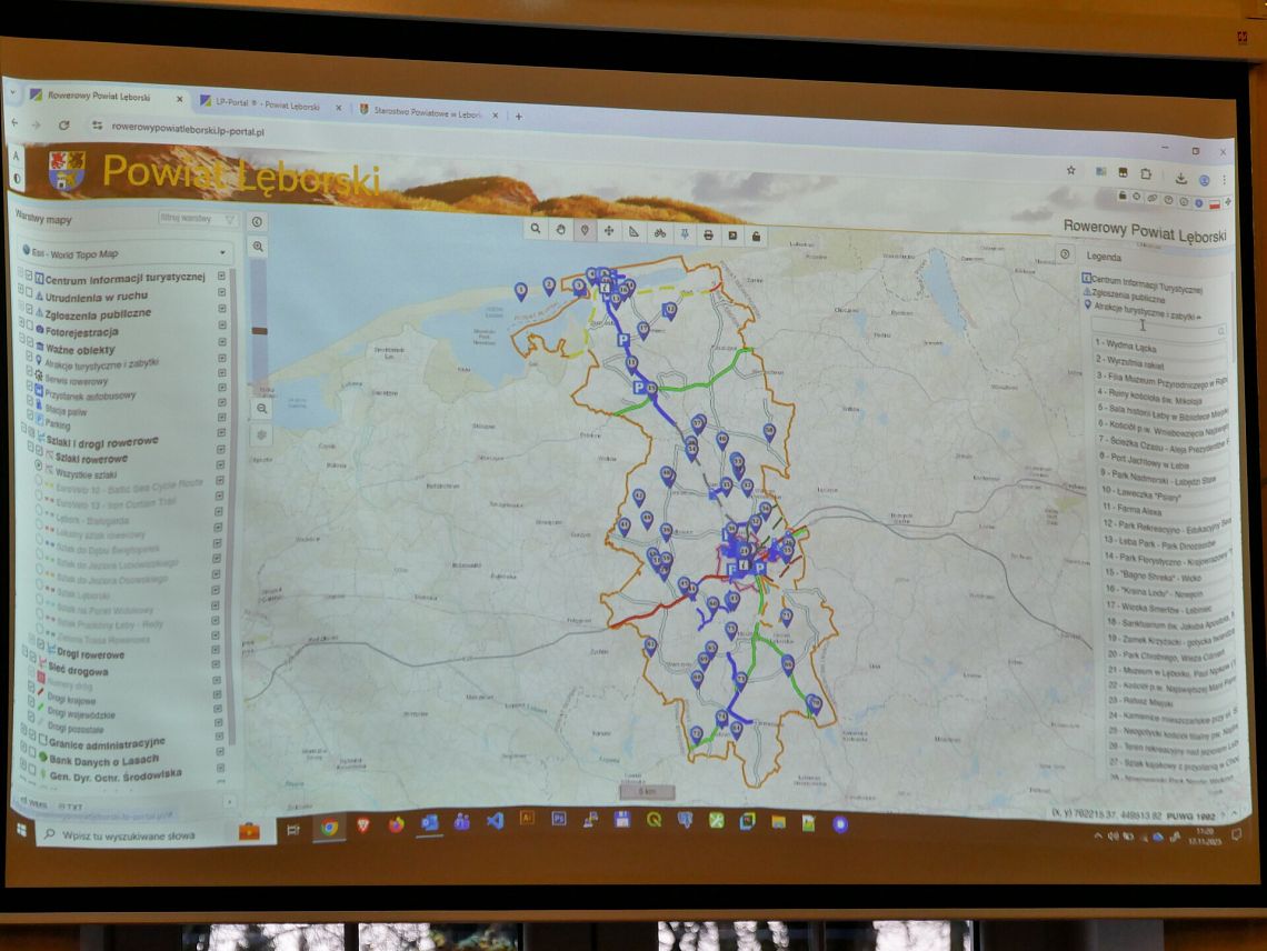 17 listopada 2025 r. odbyło się spotkanie podsumowujące realizację wspólnego projektu pn. „Opracowanie mapy turystycznej szlaków i ścieżek rowerowych na terenie powiatu lęborskiego”, w którym uczestniczył również Lębork. Podczas wydarzenia zaprezentowano możliwości nowego Portalu Rowerowego Powiatu Lęborskiego.