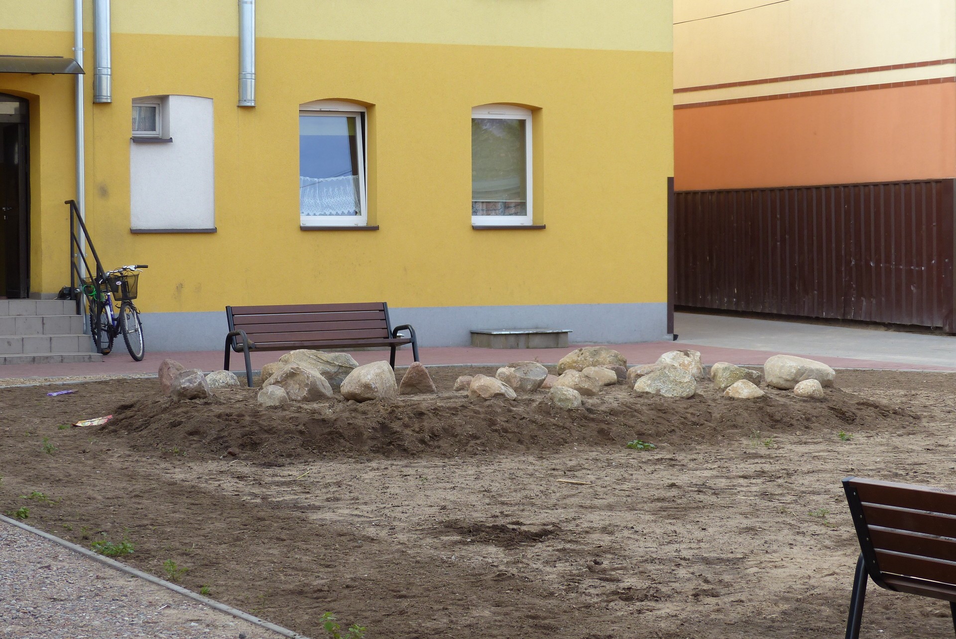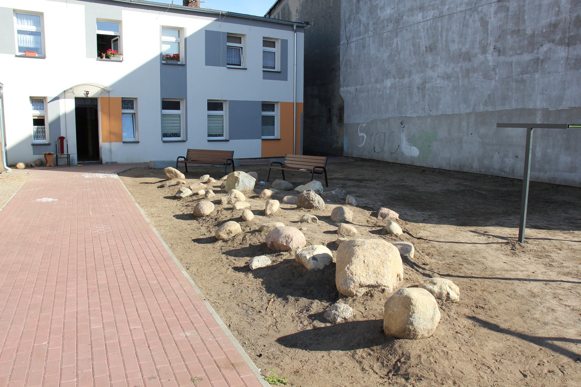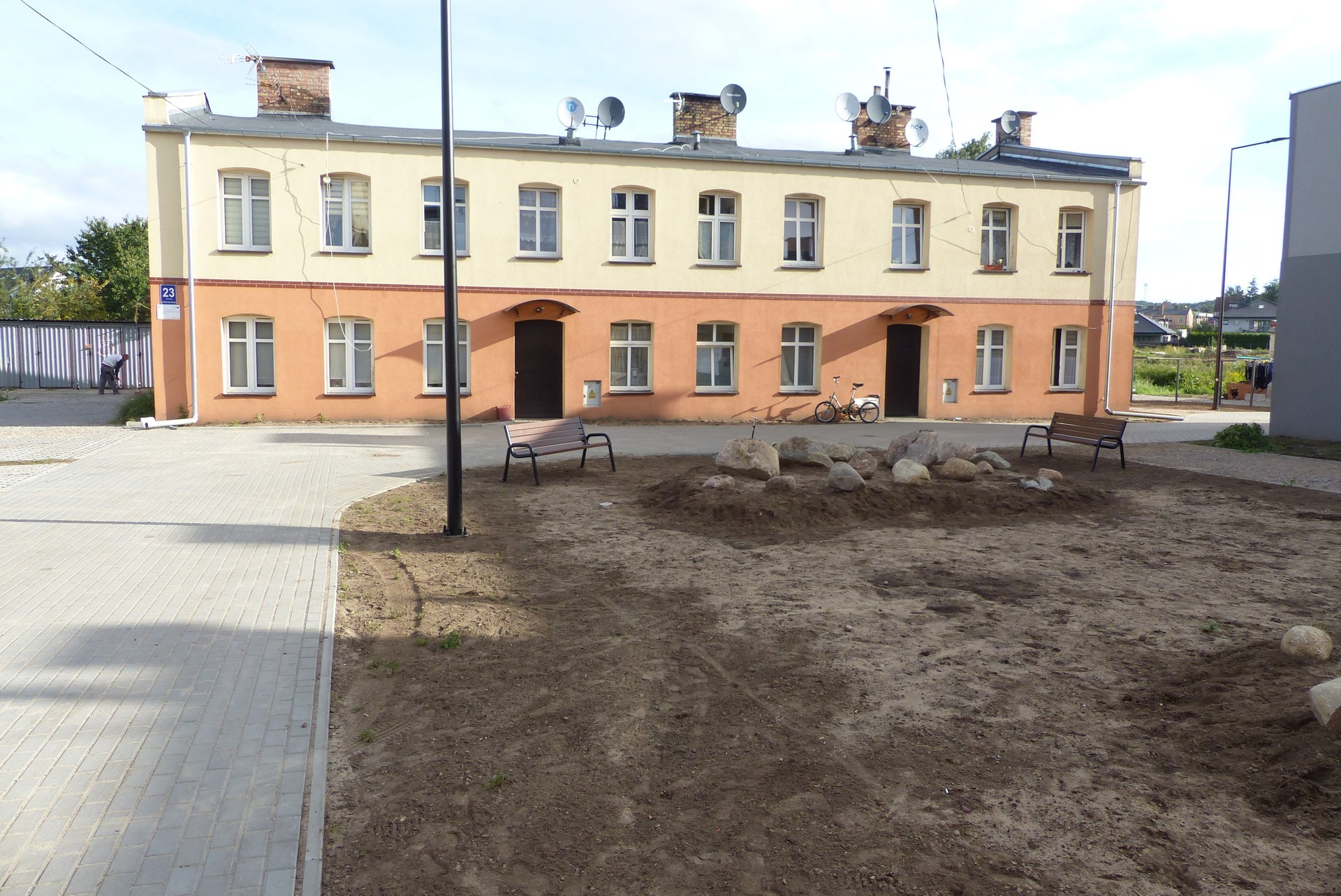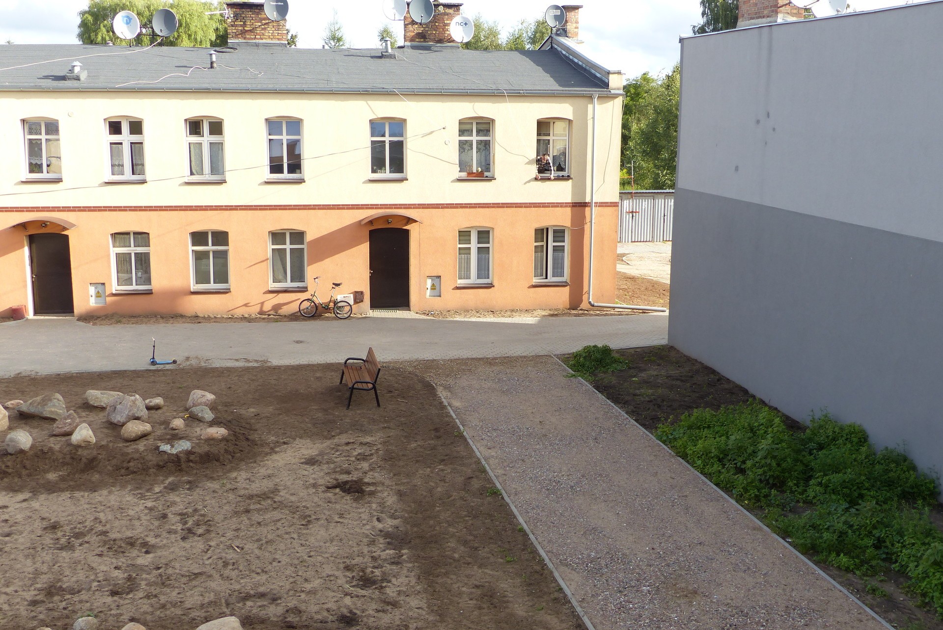 Zmieniło się także wiele na podwórku za budynkami Malczewskiego 22-24. Zaaranżowano tam przestrzeń do wypoczynku, zabawy i wspólnego spędzania czasu. W ramach rewitalizacji powstał tam parking, chodnik, ścieżki żwirowe. Postawiano wiatę śmietnikową, ławki i 2 lampy. Koszt kluczowego pierwszego etapu przebudowy podwórka wyniósł 257 tys. zł.
