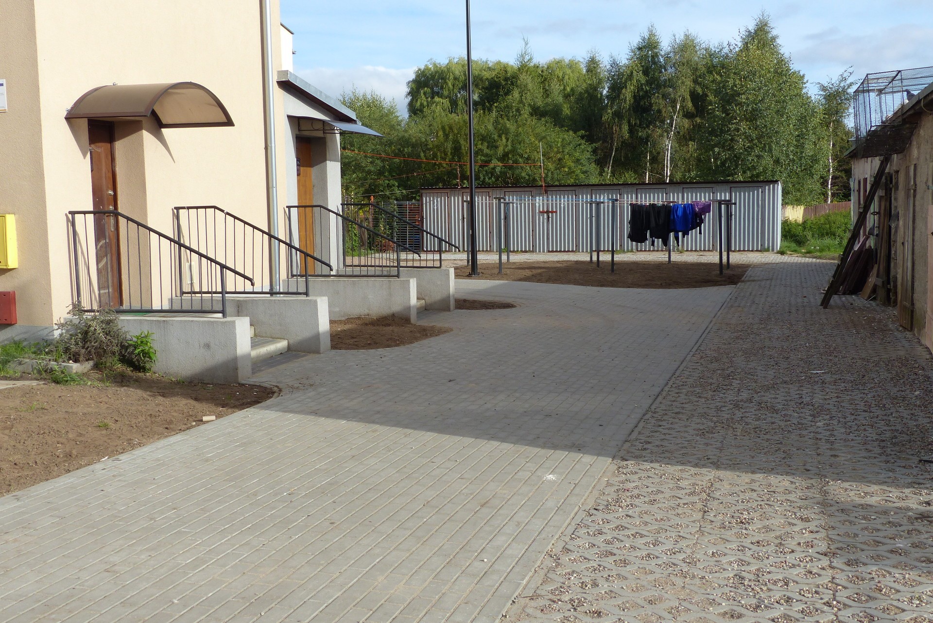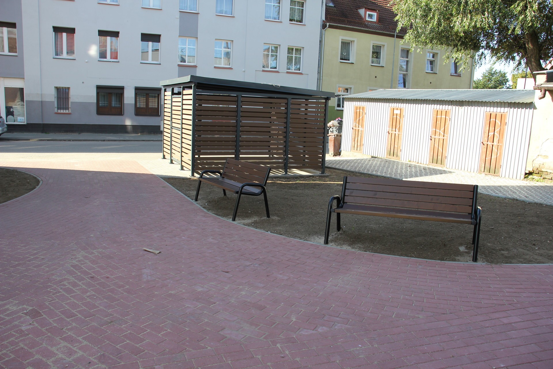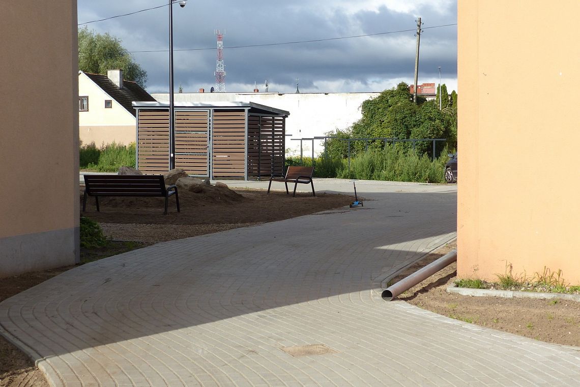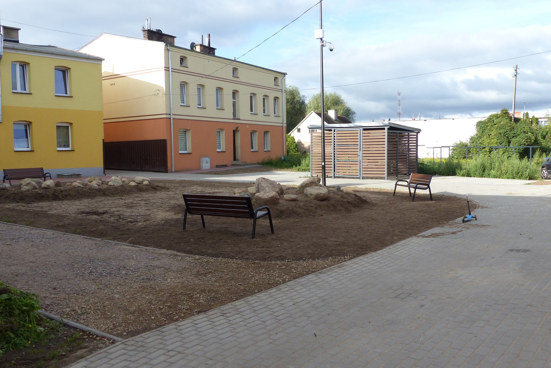 W ramach zagospodarowania dużego podwórka na zapleczu budynków Bohaterów Westerplatte 5 i Stryjewskiego 49 wybudowano chodnik, oświetlenie i monitoring. Część terenu utwardzono ażurowymi płytami na których chętnie parkują swoje auta mieszkańcy. Jak na prawdziwym podwórku nie zabrakło trzepaka i linek do prania. Postawiono też dwie wiaty śmietnikowe i pergolę z ławką. Całość uzupełnią trawniki, nasadzenia oraz skalniak. Od strony Stryjewskiego na wąskim przesmyku na prośbę mieszkańców pojawiła się furtka. Koszt prac rewitalizacyjnych w tym miejscu wyniósł 225 tys. zł.