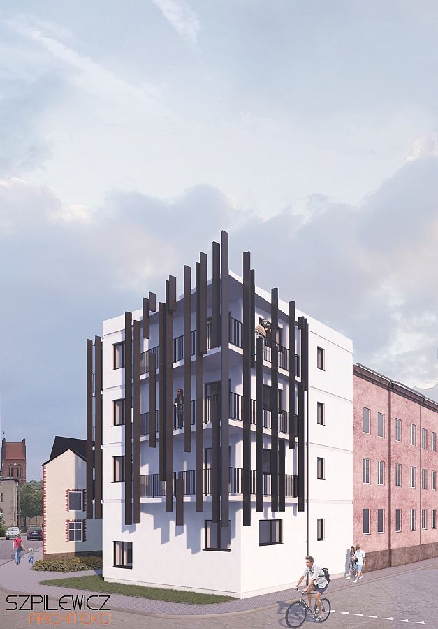 Jednoklatkowy budynek będzie miał 4 kondygnacje i wyjątkową elewację. Z racji bliskości z wybudowanym niedawno w sąsiedztwie Klubem Osiedlowym BAZA na elewacji budynku projektanci z pracowni Szpilewicz Architekci wprowadzili detal architektoniczny w postaci pionowych elementów spinających balkony. Jest to bezpośrednie nawiązanie do detalu elewacji Klubu. Budynek zostanie podłączony do miejskiej sieci ciepłowniczej, a projekt zakłada także zagospodarowanie otoczenia budynku o teren zielony (trawnik).